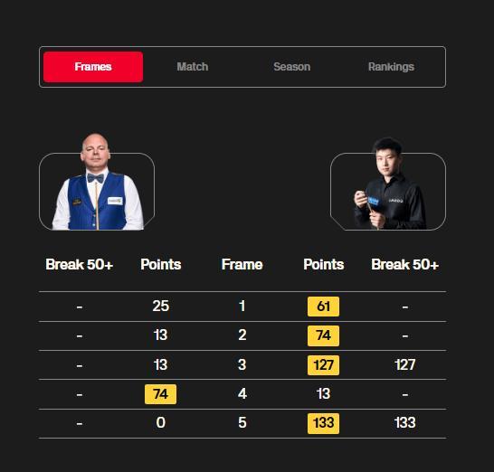 丁俊晖缺席!赵心童4-1宾汉姆晋级32强 5局比赛2局过百,最后一局轰出133-