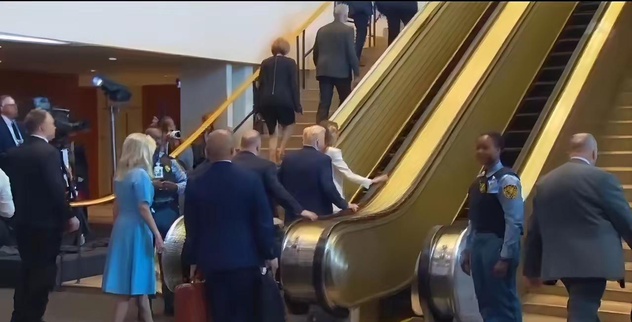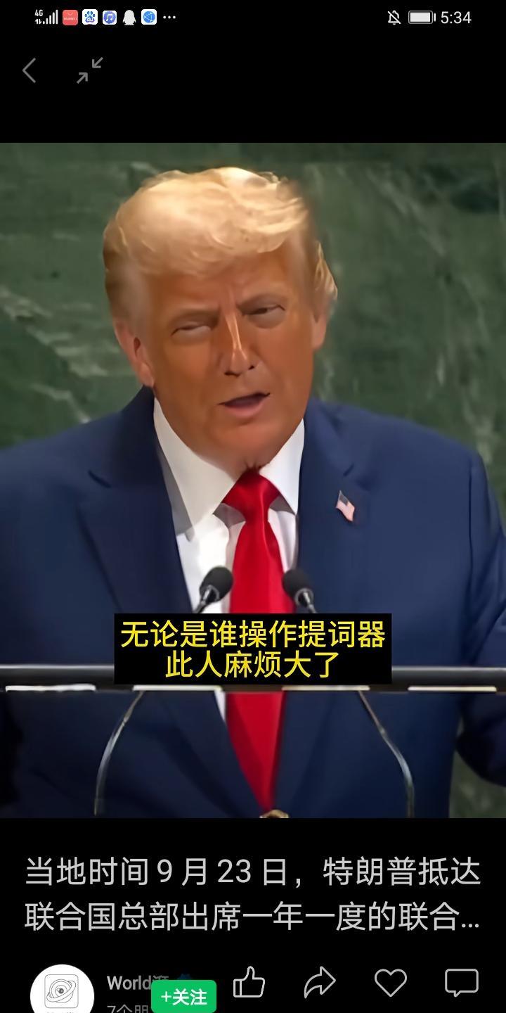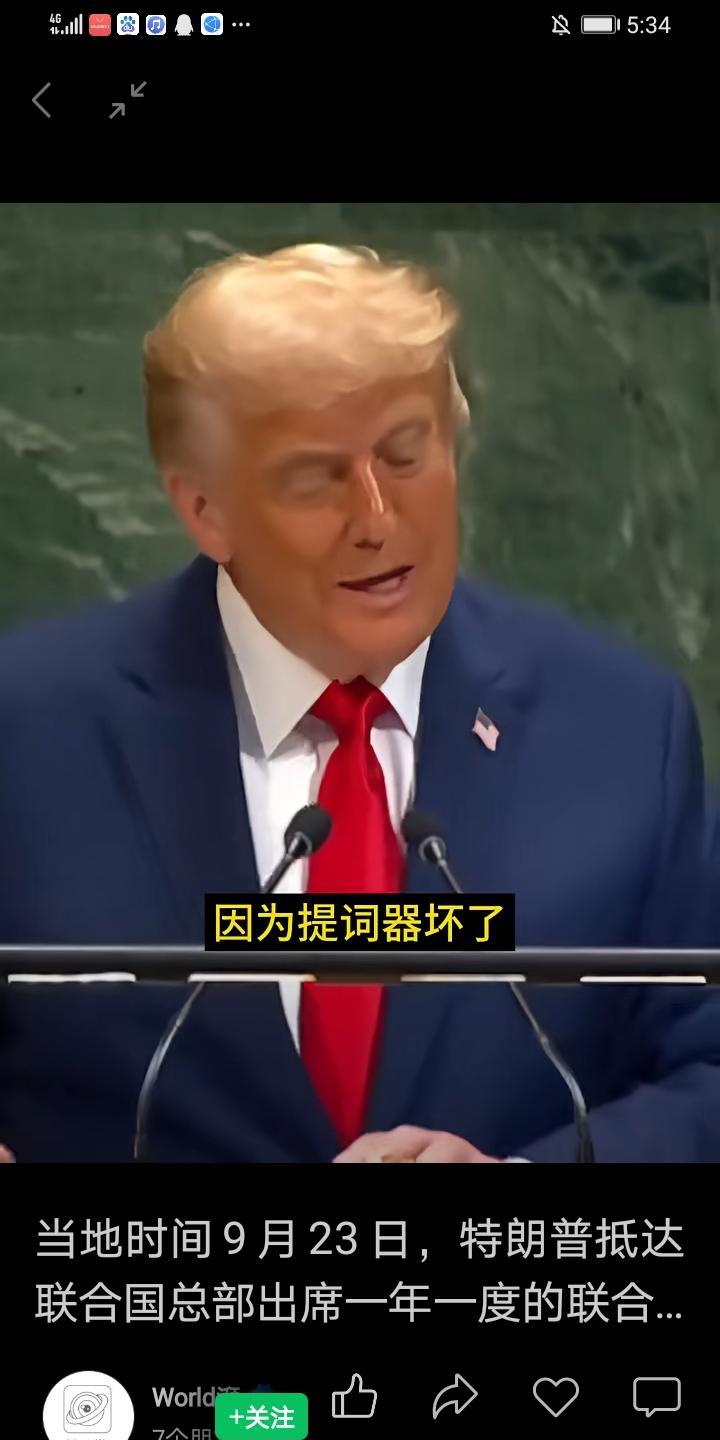 9月23日特朗普抵达联合国讲话,上楼梯和讲话“双双”“不顺当” 特朗普与妻子刚走上扶梯时,扶梯瞬间停止工作。 特朗普大会讲话时,提词器也发生了故障不好使。 联合国的设备提醒老特,该缴费了。你欠30亿会费,电梯自然不好使了,因为没钱维修!