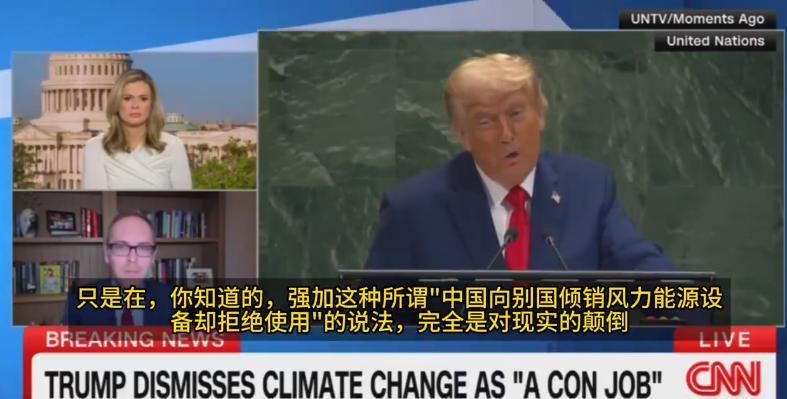 特朗普造谣造到联合国:中国自己不用风能,只管往别国倾销 在昨天(9月23日)的联