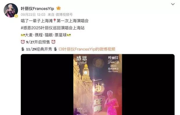 【77岁“上海滩本滩”申请出战!叶丽仪:唱了45年,终于要骗上海人眼泪了】 “浪奔,浪流——!”这旋律一响,谁的DNA里没掀起过黄浦江的浪?但你敢信,唱了45年《上海滩》、用歌声给上海“代签”了半世纪的叶丽仪,居然77岁才第一次来沪开个唱!这波“延迟满足”简直比等电视剧大结局还煎熬,歌迷们纷纷吐槽:“奶奶,您这是要等我们从穿喇叭裤熬到穿瑜伽裤才肯来啊!” 不过,叶大魔王(褒义!)显然憋了个大招:11月29日静安体育中心,她直接搬出“港乐天花板”阵容——音乐总监伦永亮操刀,吉他大神黄仲贤、苏德华加持,摆明要让经典老歌炸场子。曲单更横跨半个华语乐坛,从《万般情》到《时间都去哪儿了》,堪称“行走的流行音乐史教科书”。网友辣评:“这哪是演唱会?分明是来给年轻人上声乐公开课,顺便提醒咱爸妈当年追星有多潮!” [偷笑]至于为啥唱一辈子《上海滩》才来上海?叶奶奶调皮暗示:“好饭不怕晚!”毕竟,让上海歌迷用45年攒足期待值,这波“情怀暴击”效果直接拉满。建议抢票时备好速效救心丸:毕竟,当“浪奔浪流”终于在现场响起,怕是要全场泪奔成“江流”咯~