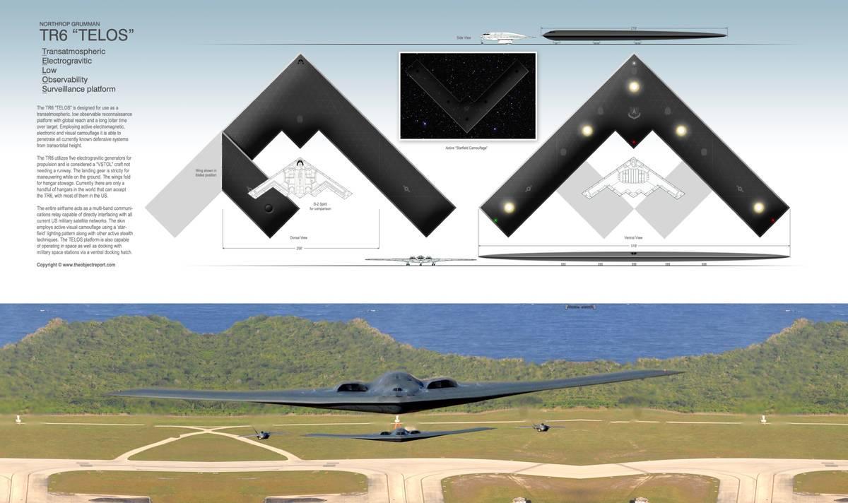 加州上空出现V型UFO,美专家:或是美军绝密无人机,领先公众认知40年! 据英国《每日邮报》当地时间9月23日报道,不久前,美国加州洛杉矶居民在自家阳台拍摄到了“UFO”造型非常奇特,其外形呈现V型,酷似回旋镖,还有9个白色灯光,在夜空中“悬停”25分钟,缓慢飞远,最终消失。 根据目击者的描述,这个UFO似乎是一款飞翼构型的飞行器,但没有看到推进装置发出的亮光。随后号称不明飞行物研究员的专家马克·李分析称,这个不明飞行器很可能是美军正在测试的“绝密无人机”,技术可能领先公众认知30-40年。 这个号称“领先公众认知30-40年”的不明飞行器出现的真及时,就在前一天中国成为首个在航母上电磁弹射五代机的国家后,美国就翻出8月28日的UFO目击报告,还非要美空军“认领”,为了给美国挽尊,甚至打上了UFO的主意。 至于飞行器的V型造型,让人想起此前曾盛传由美国诺格公司研发的“TR-6”超轨道飞行器(图3),其造型就酷似一个回旋镖,只是诺格公司从未证实研发过这款TR-6飞行器,而且传言中该机装备5台“电重力效应发动机”,然而所谓的“电重力效应”是虚构的,因此“TR-6”是否真的存在就更加存疑了。