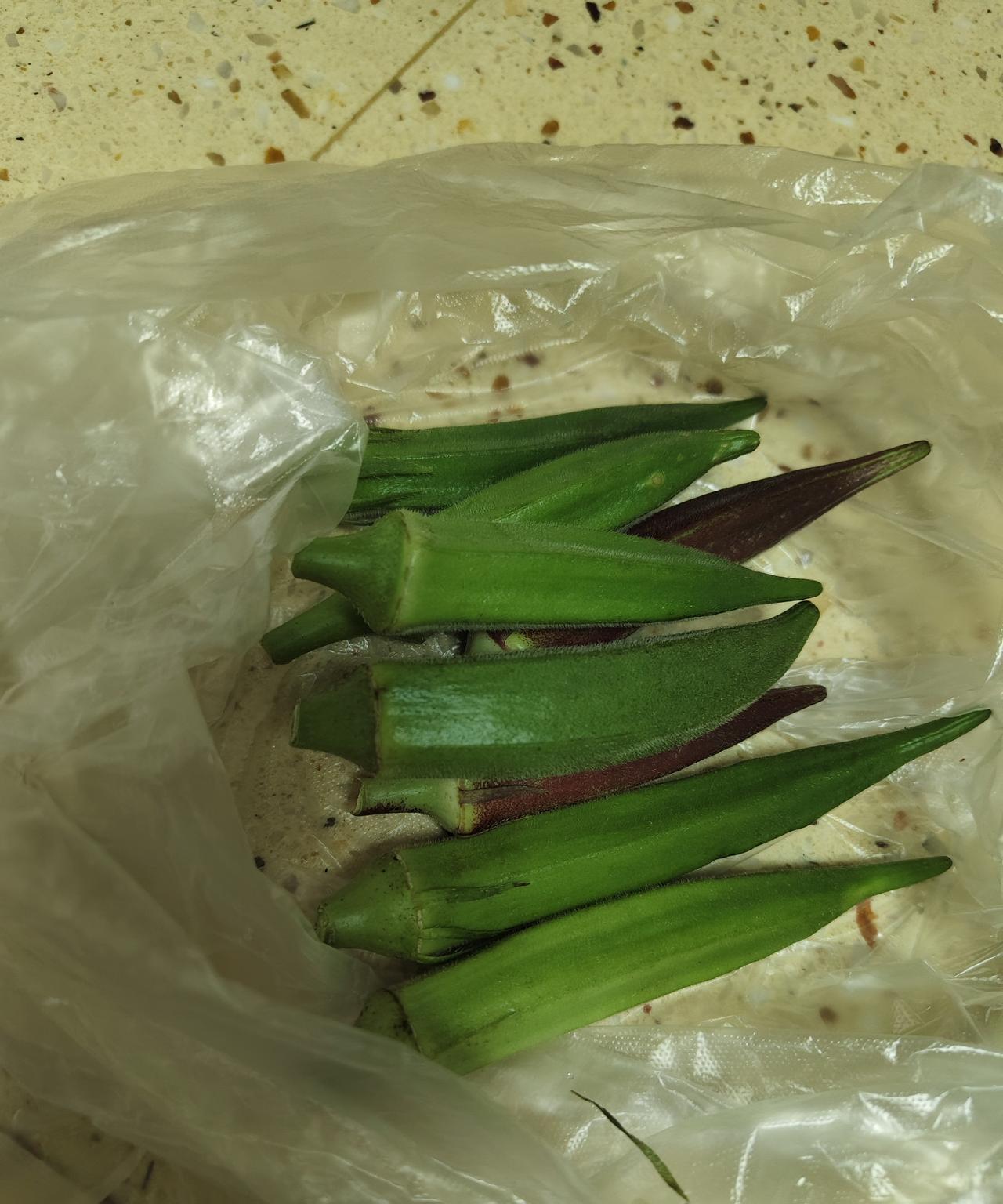 在小区门口买秋葵。卖菜的大爷说,“不多了,你都要着吧?” 我说,“孩子们都上学去