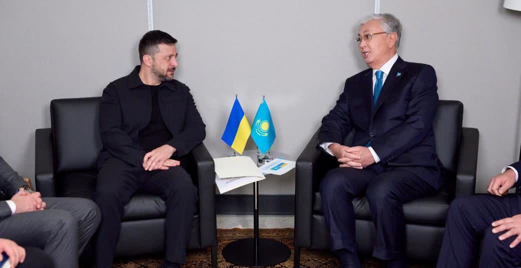 【泽连斯基与托卡耶夫会谈全程使用英语】9月23日,泽连斯基访问纽约出席联合国大会第一天,就与哈萨克斯坦总统托卡耶夫举行了会晤。现场画面显示,气氛还是热烈和友好的。最耐人寻味的是,两人的交流语言使用的不是俄语,也非各自的国语(没有配备翻译),而是英语。