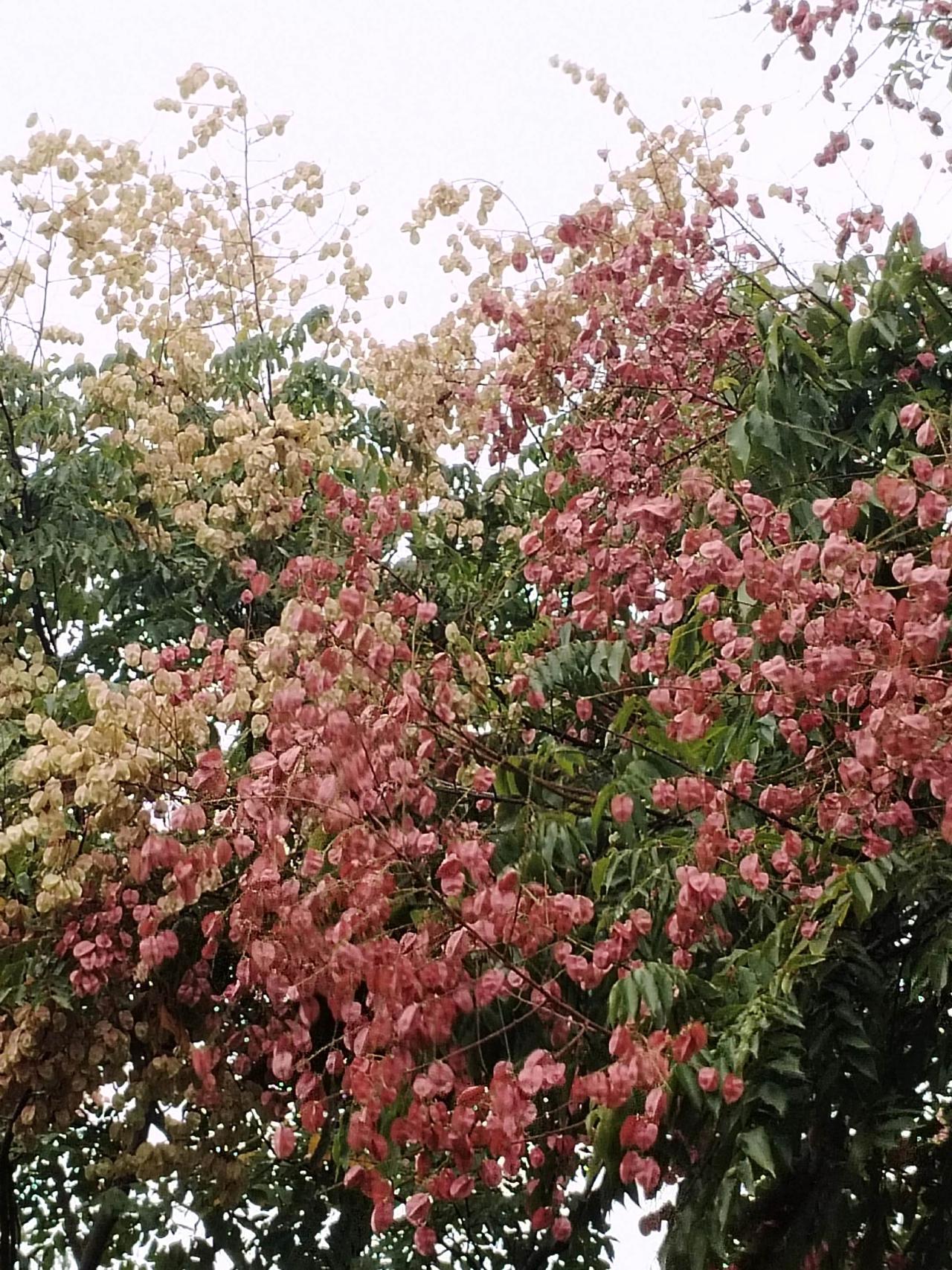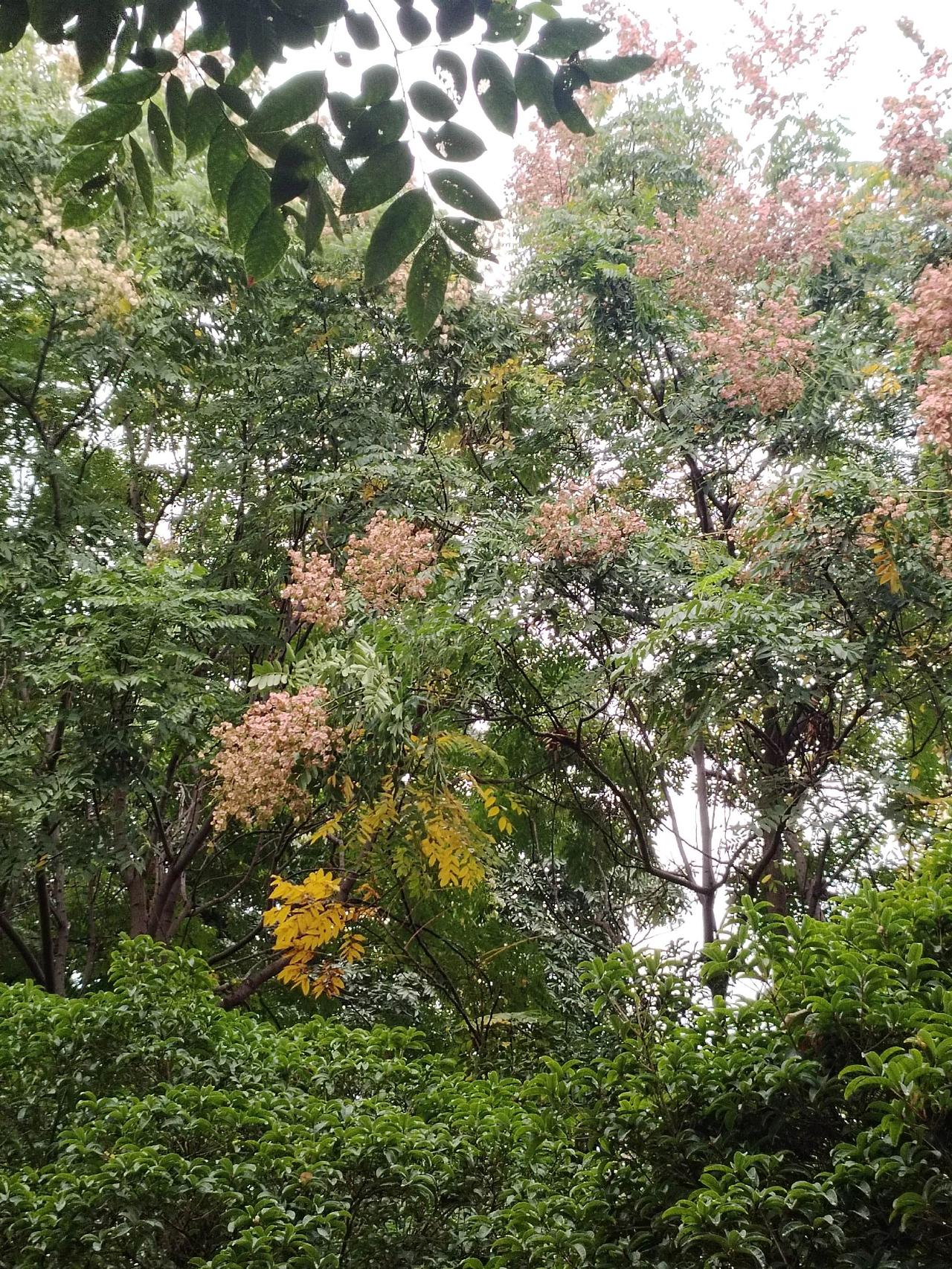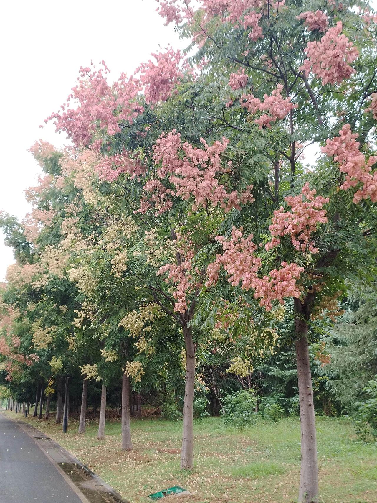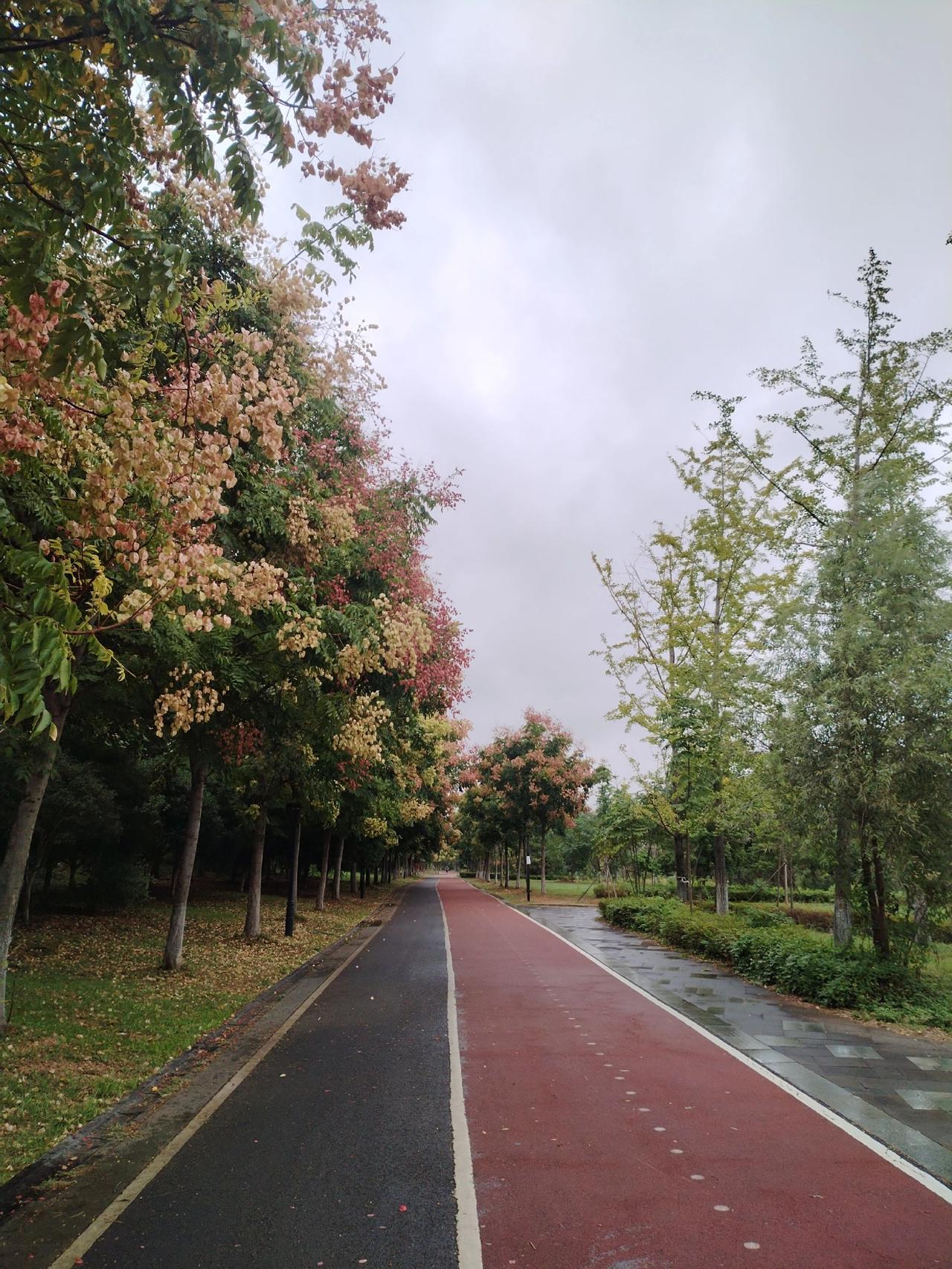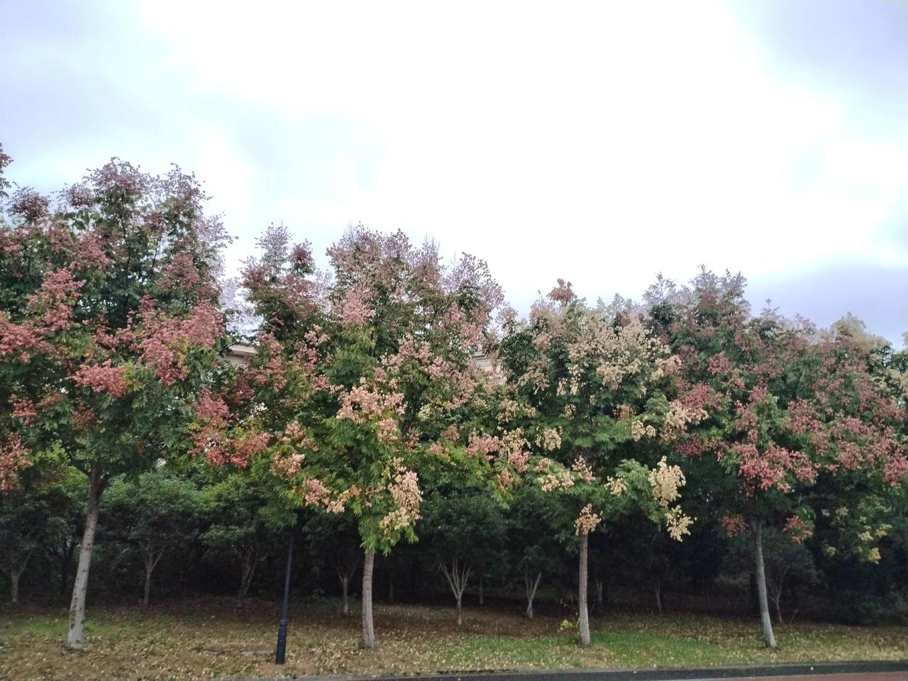 深秋的南昌,天高云淡,阳光褪去了盛夏的炽烈,变得温煦而明亮。信步于城东的一处公园绿道,却恍若踏入了一幅浓墨重彩的油画之中。 道路两旁,成排的栾树正迎来它们最绚烂的季节。这些自然的舞者,枝头仿佛打翻了调色盘: 黄的如金,红的似火,间或点缀着尚未褪尽的绿意。 那黄色的小花簇拥成穗,在微风里轻轻摇曳; 红褐色的蒴果则像一盏盏小灯笼,缀满枝头,与绿叶交织出缤纷的韵律。 南昌网红打卡地 南昌网红 南昌 秋天