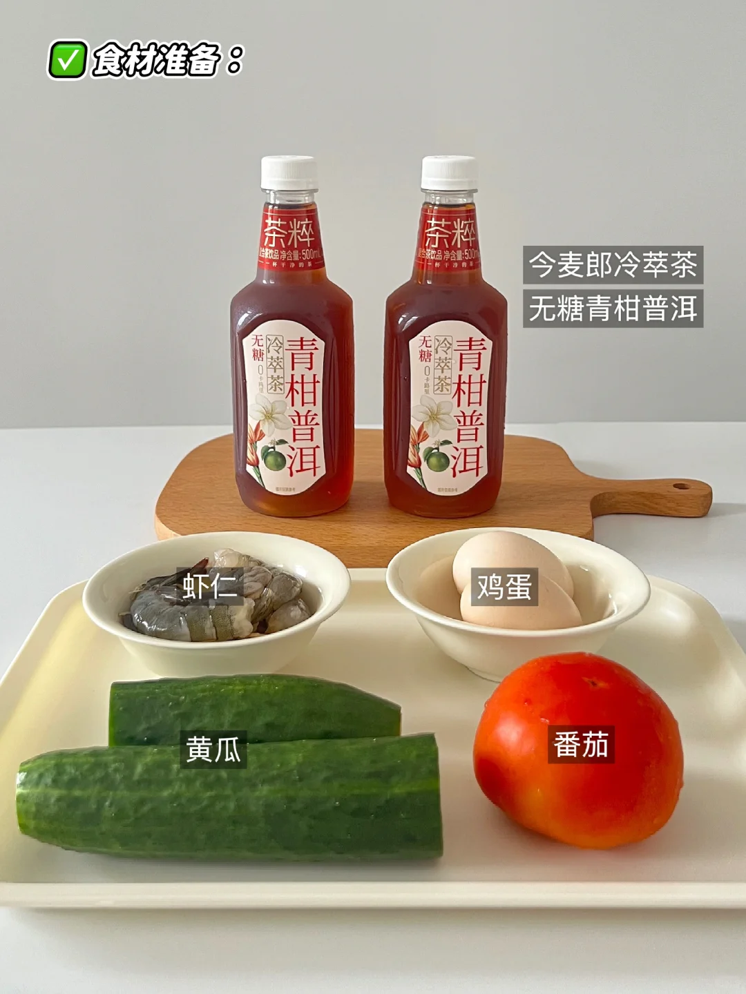 🍅 食材准备:番茄、虾仁、鸡蛋、黄瓜