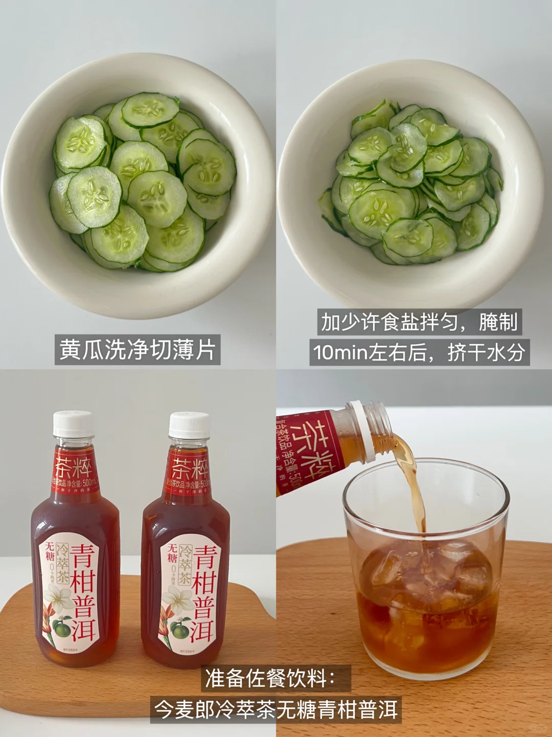 1️⃣ 黄瓜洗净后切薄片,加少许食盐抓匀;