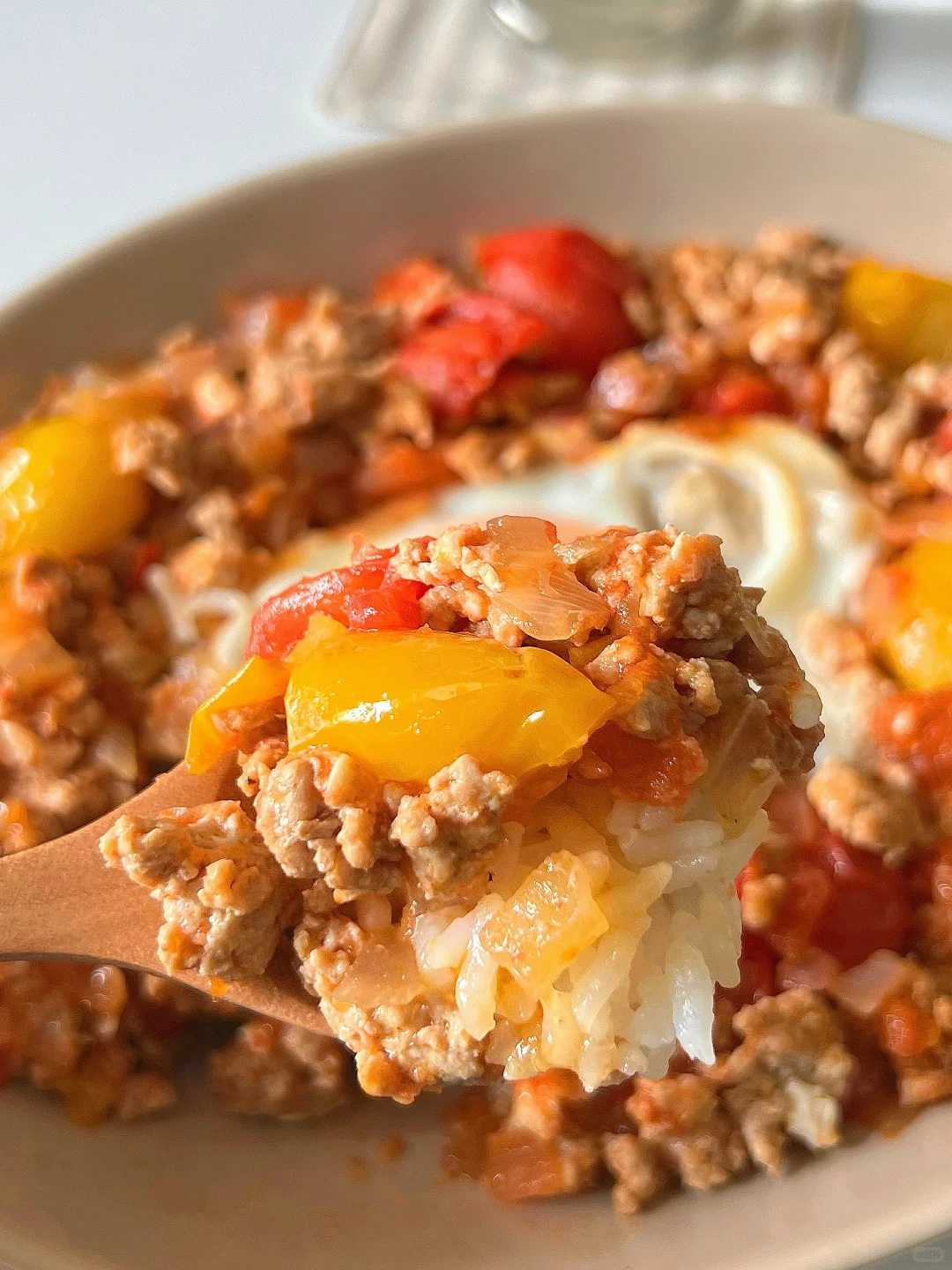 今天吃的是超爱的盖饭系列!! 茄汁浓郁,肉糜鲜香,加之洋葱碎爆炒的香气… 是天热了会越吃越喜欢的一碗🥣 低脂,又很下饭~感觉融合得刚刚好[okR] 这个夏天的减脂菜单[加一R] 简单又好吃[哇R] . 🍳 食材:番茄、洋葱、猪肉/牛肉、鸡蛋 具体做法在P6-8哦~ 期待各位的成品分享!!