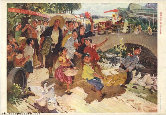 老版宣传画:欢迎哥哥姐姐下乡来
