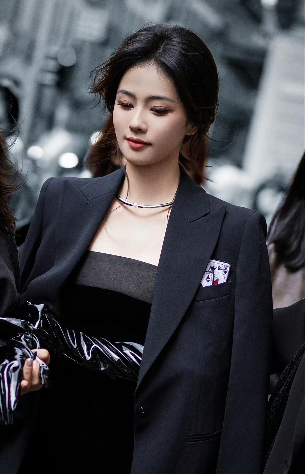 白鹿米兰时装周街拍路透,姐这会是黑色的女王,暗酷暗酷的。#演员美女#
