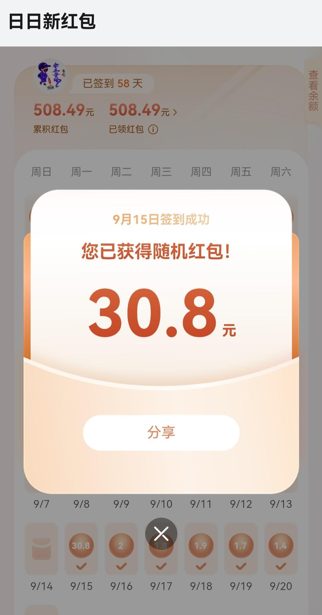 华为nova14签到红包结束了,两个月的期限,有两天忘记签到了,总计508.4