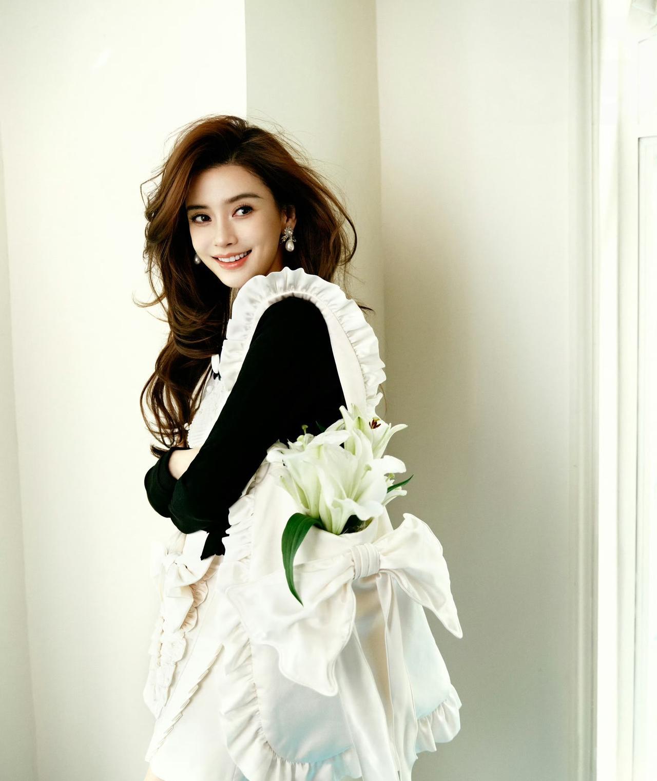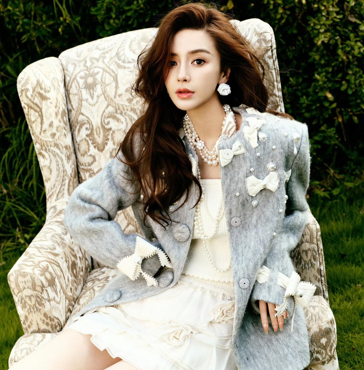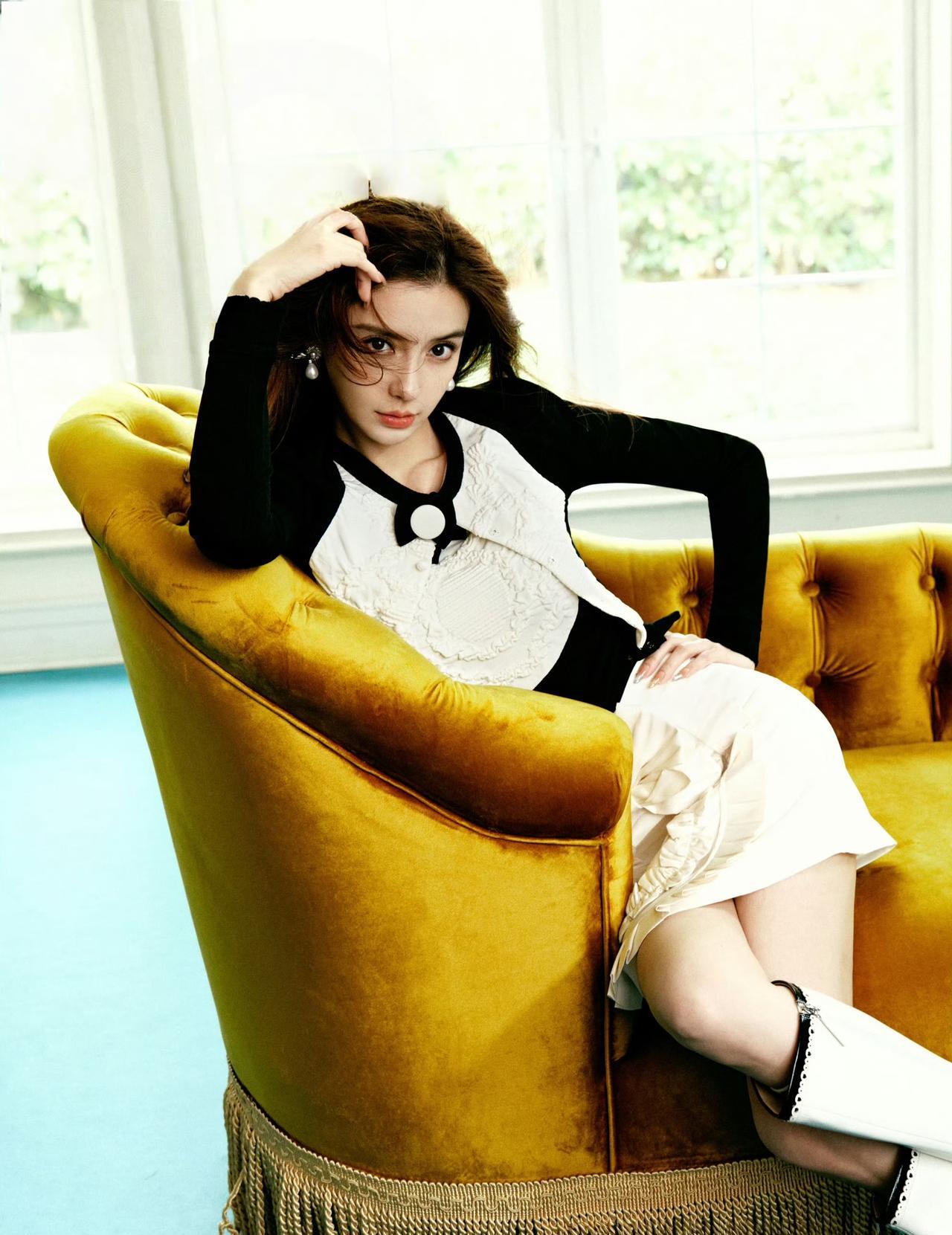 Angelababy最新封面大片曝光, 主题明媚而生, 直接美上热搜! 绿野中爬