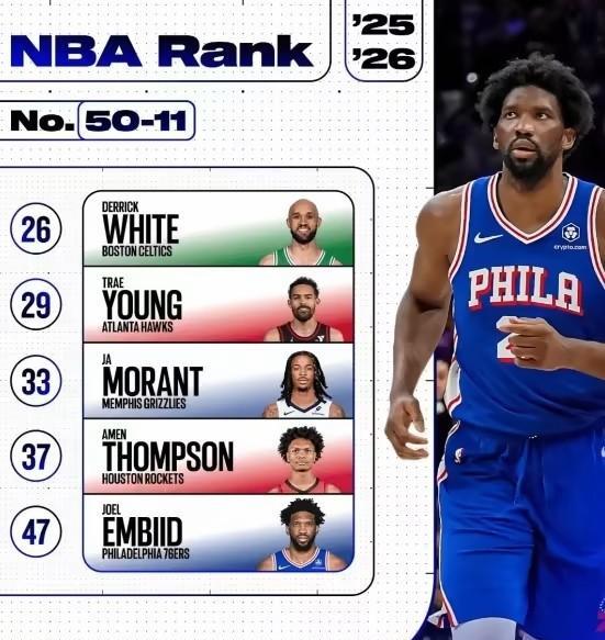 NBA百大球星榜引爆热议!约基奇力压群雄蝉联第一 文班亚马杀进前五太夸张】 ESPN年度百大球星完整榜单刚刚公布,掘金核心约基奇稳坐王座,连续两年登顶!上赛季他交出场均29.6分12.7篮板10.2助攻的恐怖三双,季后赛虽败犹荣。雷霆新王亚历山大强势杀到第二,东契奇位列第三。而最令人震惊的是——年仅20岁的文班亚马空降第五! 前十格局暗藏玄机: 1. 约基奇(掘金)| 2. 亚历山大(雷霆) 2. 东契奇(独行侠)| 4. 字母哥(雄鹿) 3. 文班亚马(马刺)| 6. 爱德华兹(森林狼) 4. 库里(勇士)| 8. 詹姆斯(湖人) 5. 杜兰特(太阳)| 10. 布伦森(尼克斯) 三大爆点引全网炸锅: 1. 天才少年碾压传奇:文班亚马强势杀入前五,成为榜单最大黑马!休赛期他秘密特训,师从加内特、奥拉朱旺,新赛季或带领马刺彻底崛起 2. 老牌超巨排名滑坡:库里第7、詹姆斯第8、杜兰特第9——三大巨头首次集体跌出前六,新时代的交接班来得太快 3. 东契奇逆袭预告:减重成功的东契奇在欧洲杯大杀四方,新赛季若保持健康,MVP争夺战或将改写格局 值得关注的排名动向: · 浓眉位列第14,落后詹姆斯6个位次 · 火箭新核阿门-汤普森冲至第37,杜兰特加盟后休斯顿成最大变数 · 恩比德暴跌至第47,伤病阴影笼罩MVP中锋 新赛季倒计时开启,这份榜单是实力认证还是毒奶榜?欢迎在评论区留下你的观点!