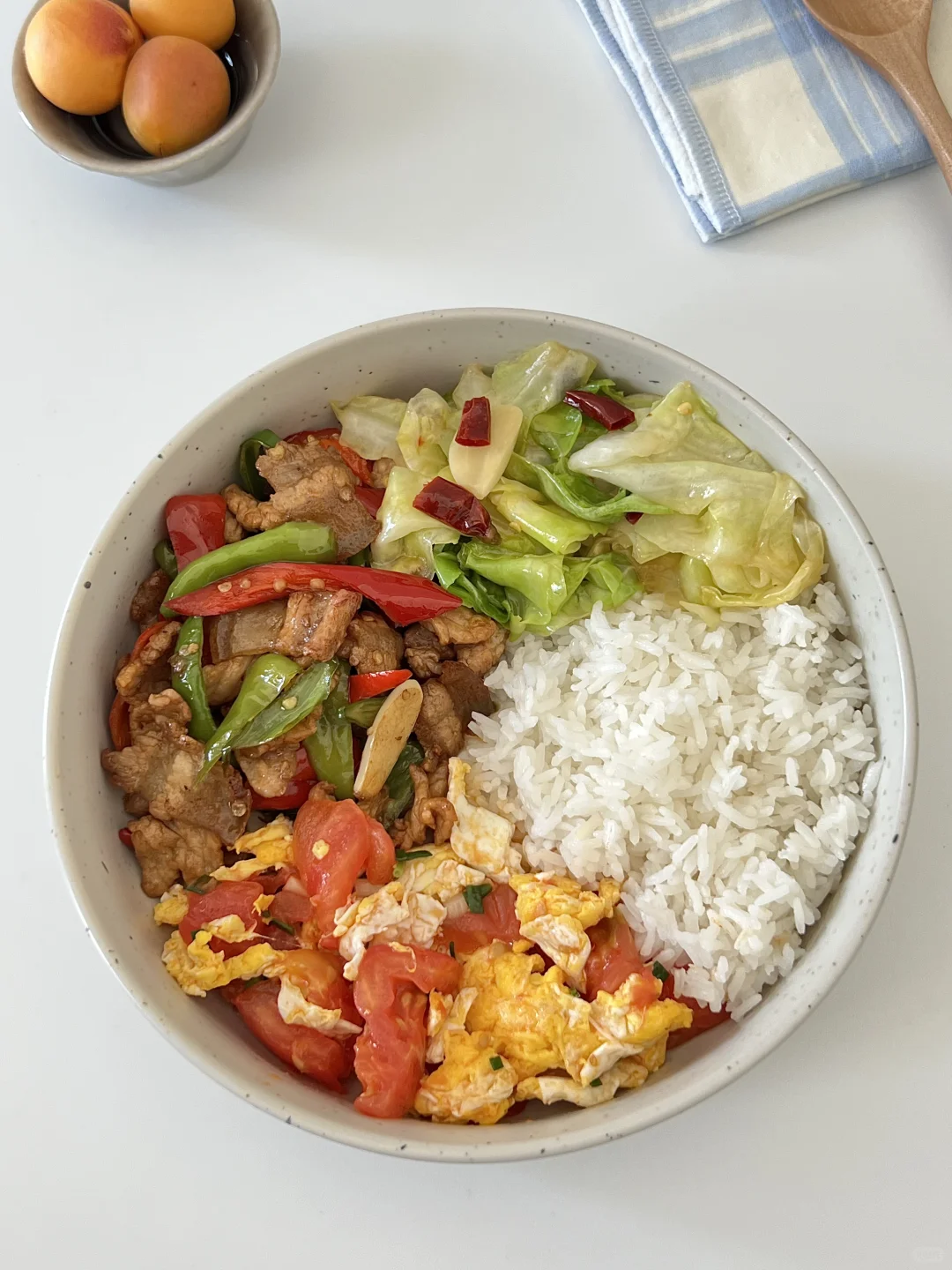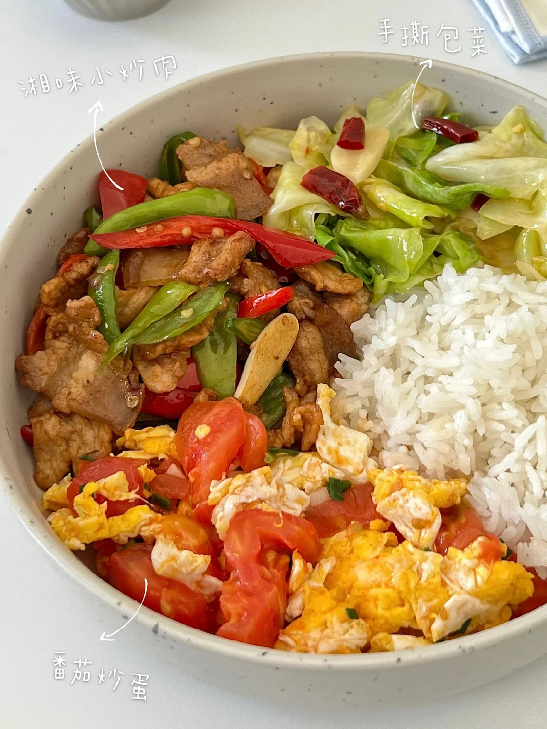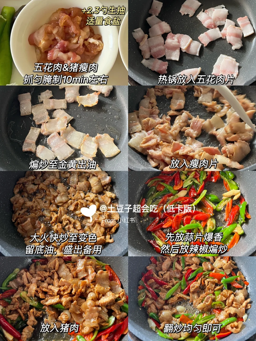 🌶️ 食材:辣椒、猪肉(五花肉&猪瘦肉)、包菜、番茄、鸡蛋、大蒜/干辣椒
