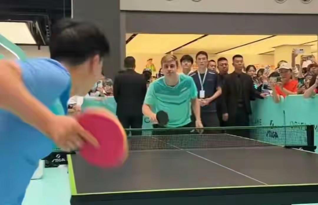 笑死了,莫雷加德和粉丝打球, 连吃两个发球, 直呼打不过, 中国乒乓真是卧虎藏龙! 昨天小莫在北京举办的球迷见面会,去了很多球迷, 没想到, 到了球迷互动环节出了叉子! 球迷虽然不是职业运动员, 一看打球姿势, 肯定练过, 连发两个球, 小莫都没接住。 不过小莫这心理素质也很硬, 连呼精彩! 其实这个球迷遮挡了, 小莫也没指出来, 还表扬了他!