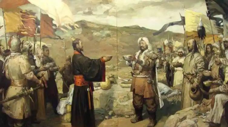开皇五年(585年)七月,当时沙钵略可汗既遭达头可汗困扰,亦畏惧东面的契丹逐渐强大,于是派遣使者到隋朝告急,请求允许他率领所属部落迁徙到大漠南面,在白道川一带暂住。隋文帝答应他的请求,命令杨广派兵接应,并供给他衣服食物,赏赐他车驾服饰及乐器。沙钵略可汗借助隋军到来的声势,率军向西攻打阿波可汗,打败并活捉阿波可汗。但阿拔可汗部落却乘沙钵略可汗后方兵力空虚之机发兵偷袭,掳走沙钵略可汗的妻子儿女。隋军替沙钵略可汗打败阿拔可汗部落,并把所缴获的人畜物品全部给予沙钵略可汗。沙钵略可汗十分高兴,就与隋朝订立盟约,以沙漠作为两国的分界。 于是,沙钵略可汗上表隋文帝说:“大突厥伊利俱卢设始波罗莫何可汗臣摄图上言:大使、尚书右仆射虞庆则到来,伏奉诏书,并兼宣读慈爱的旨令,仰思恩情信义的表现,时间越久越明显,只是知道承受的恩信,而不能答谢。突厥自从上天设置以来,五十多年,居住在沙漠,在域外之地自称为王,地方超过万里,兵马有一亿之多,一直凭武力兼并外夷,与中国分庭抗礼。对于外夷来说,没有一个国家能比突厥更为强大。不久之前,气候清朗温和,风调雨顺,臣认为中国大概有大圣兴起。天无二日,地无二主,大隋皇帝是真正的皇帝,我岂敢再凭恃险隘,阻兵抗命,窃取名号,妄称天子!今日因羡慕淳朴风俗,归心有道之君,情愿屈膝跪拜,永远做大隋的藩附属国。”于是派遣第七子窟合真入朝。 八月初二日,库合真来到长安。隋文帝下诏书说:“沙钵略可汗以往虽然与隋朝和亲交好,但仍是两个国家;现在君臣有序,便成为一国。”于是命令举行郊、庙大祀,告知天地、祖先,并命令把此事通告远近。凡是赐给沙钵略可汗的诏书,不直呼他的名字。隋文帝还在内殿宴请库合真,任命他为柱国,封爵安国公,并把他引见给皇后独孤伽罗,赏赐非常丰厚。沙钵略可汗非常高兴,从此,每年都按时不断地向隋朝进贡物品。