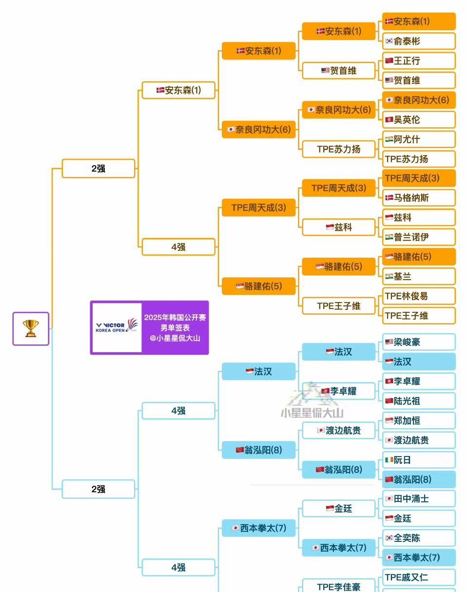 #2025年韩国羽毛球公开赛# 男单8强对阵 【上半区】 【下半区】
