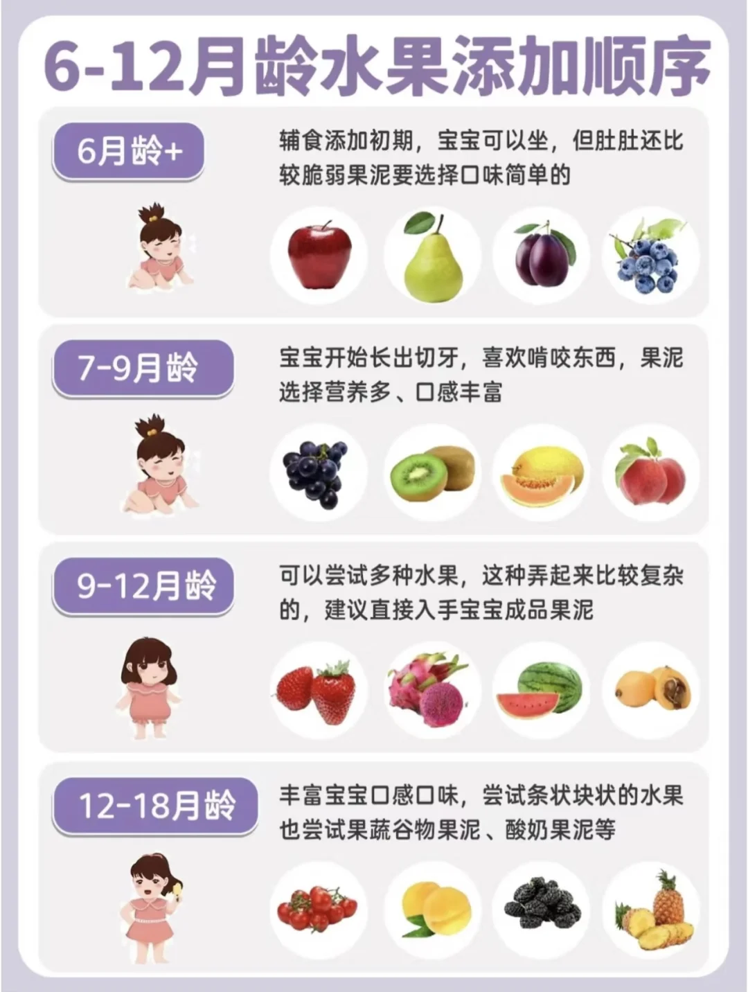 刚给娃加果泥就懵了?先加苹果还是香蕉?高敏水果啥时候试?整理了儿科建议的分阶添加指南,按月龄喂准没错👇