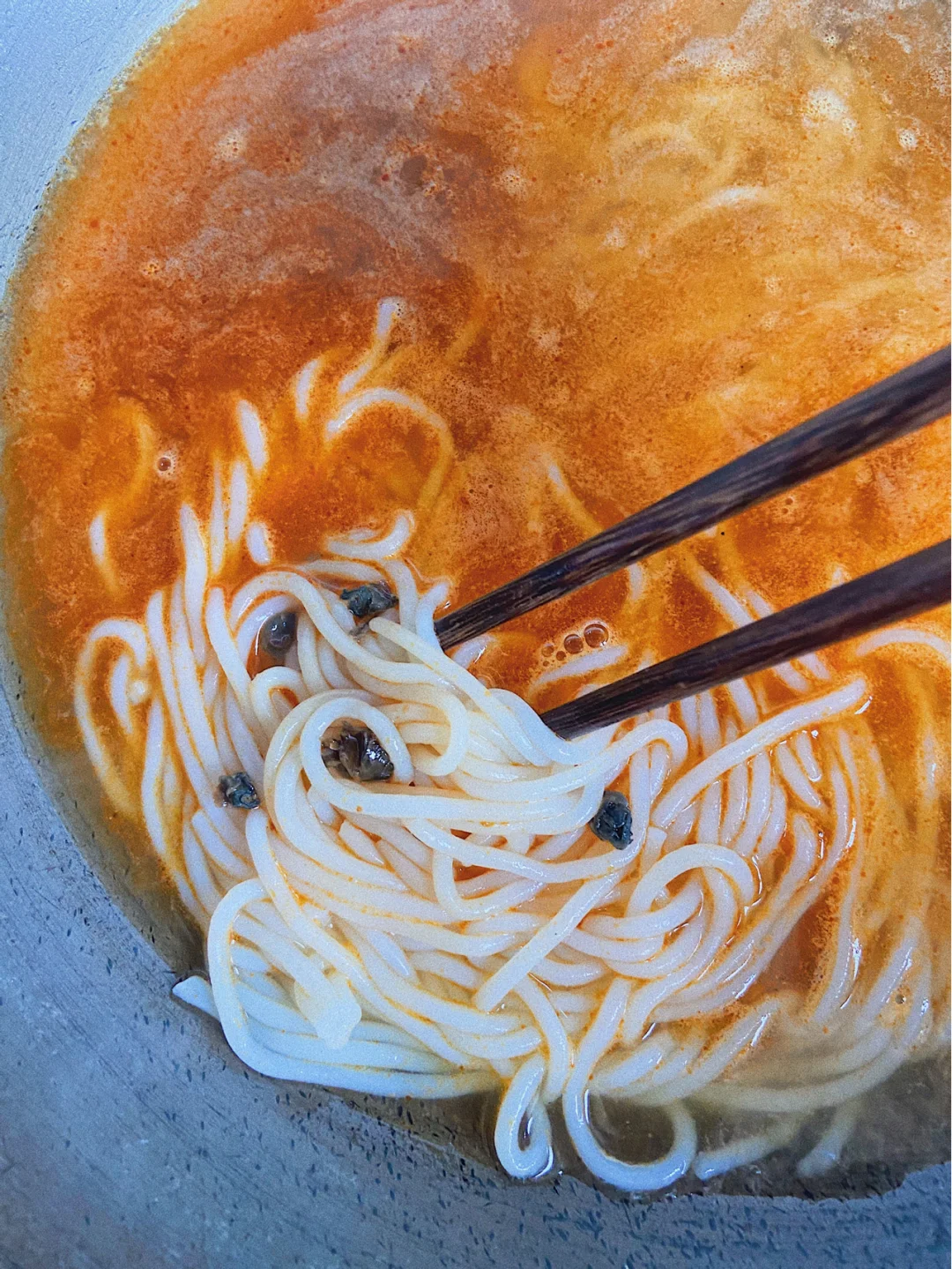 3️⃣煮沸后➱加入螺蛳汤 让面足够的吸收汤汁的味道