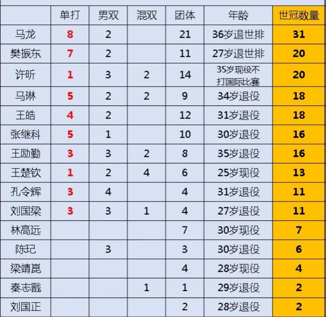 国际乒联名人堂创设于1993年。入选标准:在世锦赛或奥运会中获5块以上金牌。孙颖莎等选手都有资格入选。 正常来说,每届世锦赛期间加冕新人。2016年后已经暂停评选近十年。 【评选】:由前乒乓球世界冠军和官员们组成的斯韦斯林俱乐部委员会决定。 世锦赛男团冠军奖杯即为斯韦斯林杯。 【世锦赛是乒乓球项目的菩提老祖】 【中国入选人员】:过去的绝对主力基本都入选。(图1) 【坊间猜测】:都是中国人入选,老外没机会。干脆就停了吧。 【二】 1)假如重启评选,新增候选人有: 樊振东、王楚钦、孙颖莎、陈梦、王曼昱。 2)2024年改制前,世界杯限二,虽也是三大赛之一,但不列入名人堂评选标准,也被部分球迷称为水杯。 改制后不限二,含金量增加,是否列入标准,得看重启后的名人堂规则。 3)乒坛名人堂何时重启?未知。