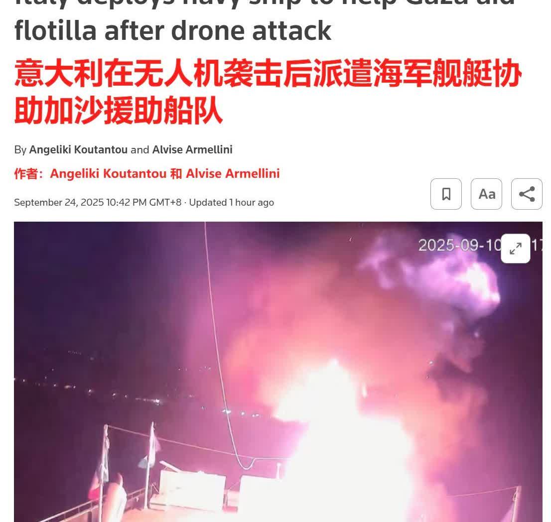 西班牙、意大利宣布为“环保少女”护航,以色列或与北约开战? 据多家外媒报道,当地时间24日,西班牙首相桑切斯、意大利防长克罗塞托相继宣布,会派军舰为“全球团结船队”护航,协助该船队为巴勒斯坦人送去人道主义物资。 全球团结船队共有约50艘民用船只,船上有许多律师和活动人士,包括著名的“环保少女”通贝里。他们计划打破以色列的封锁,停靠到加沙地带的码头,给当地人发放救援物资。 而就在23日,船队控诉称,他们在希腊海域遭到了12架以色列无人机的袭击,11艘船受到了无人机爆炸、碎片溅落等的影响,船上通讯也受到了干扰。以色列官方虽然没有承认此事,但在24日发出警告称,船队必须将援助物资放到以色列的港口,并由以方运往加沙,否则,以色列“将采取必要措施”阻止船队的行动。 而这似乎激怒了西班牙和意大利。西班牙首先宣布派出军舰护航,意大利更近一步,要派出其目前最强的护卫舰——排水量约6700吨的贝尔加米尼级护卫舰。 而这就牵扯出了一些问题:上次“环保少女”打算坐船硬闯加沙地带,遭以军悍然登船搜查,她本人也遭到扣押,最终没能抵达加沙地带就被以色列遣返。而这次,西班牙和意大利出动了军舰,以色列如果想再次登船,西意两国到底要不要阻止?以色列又有没有胆量和能力与两国军舰对抗?如果对抗,这会不会成为以色列与北约开战的契机?总之,事情正在变得微妙起来,具体将如何发展,就让我们拭目以待。