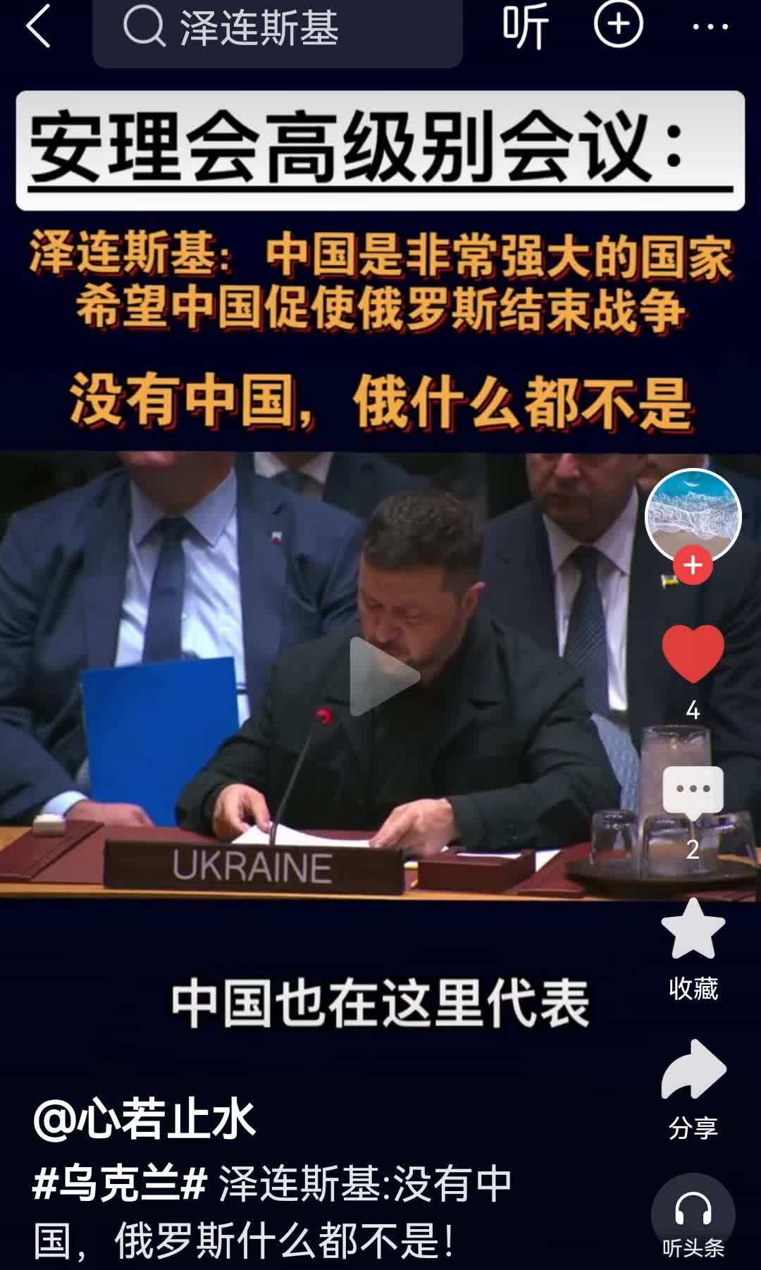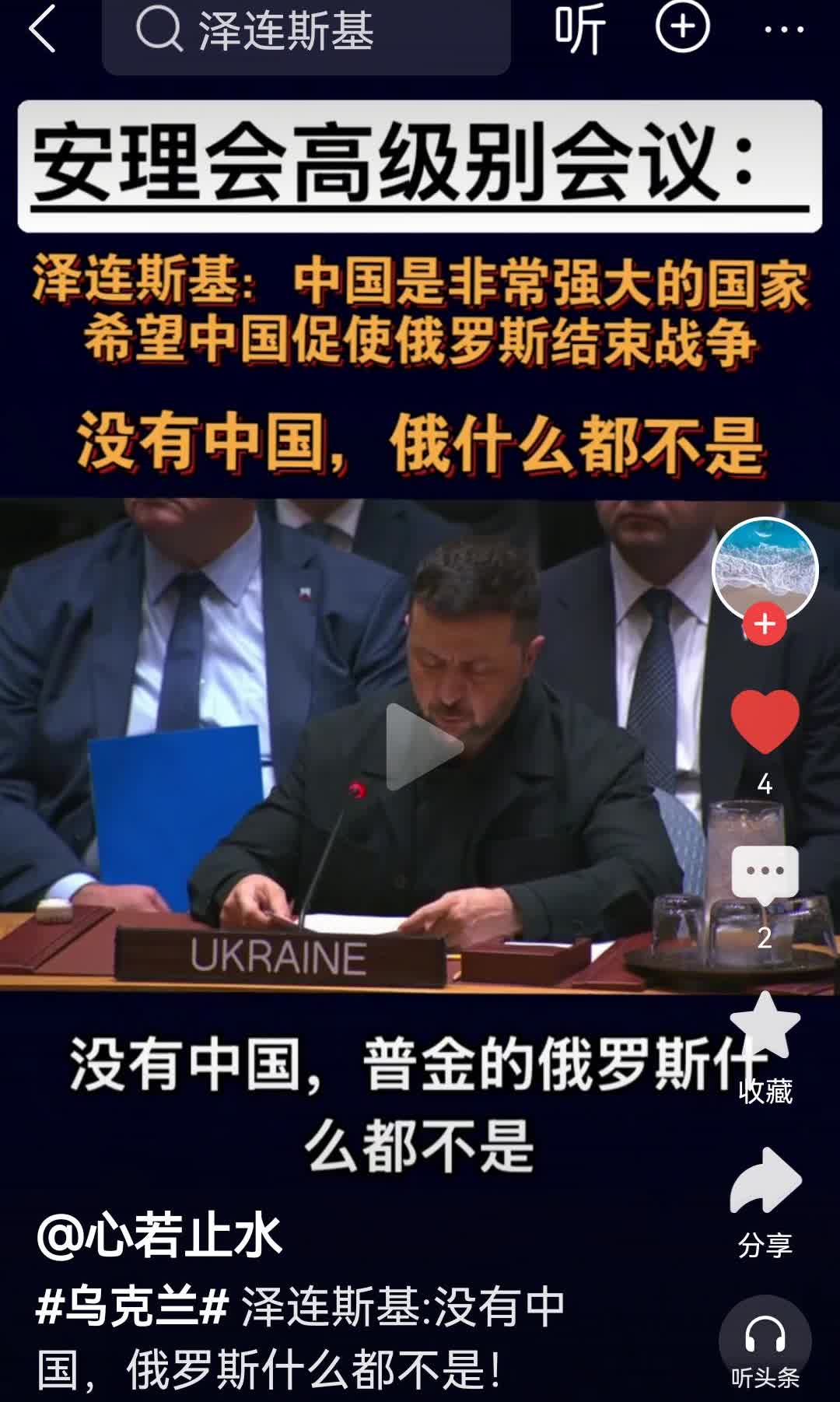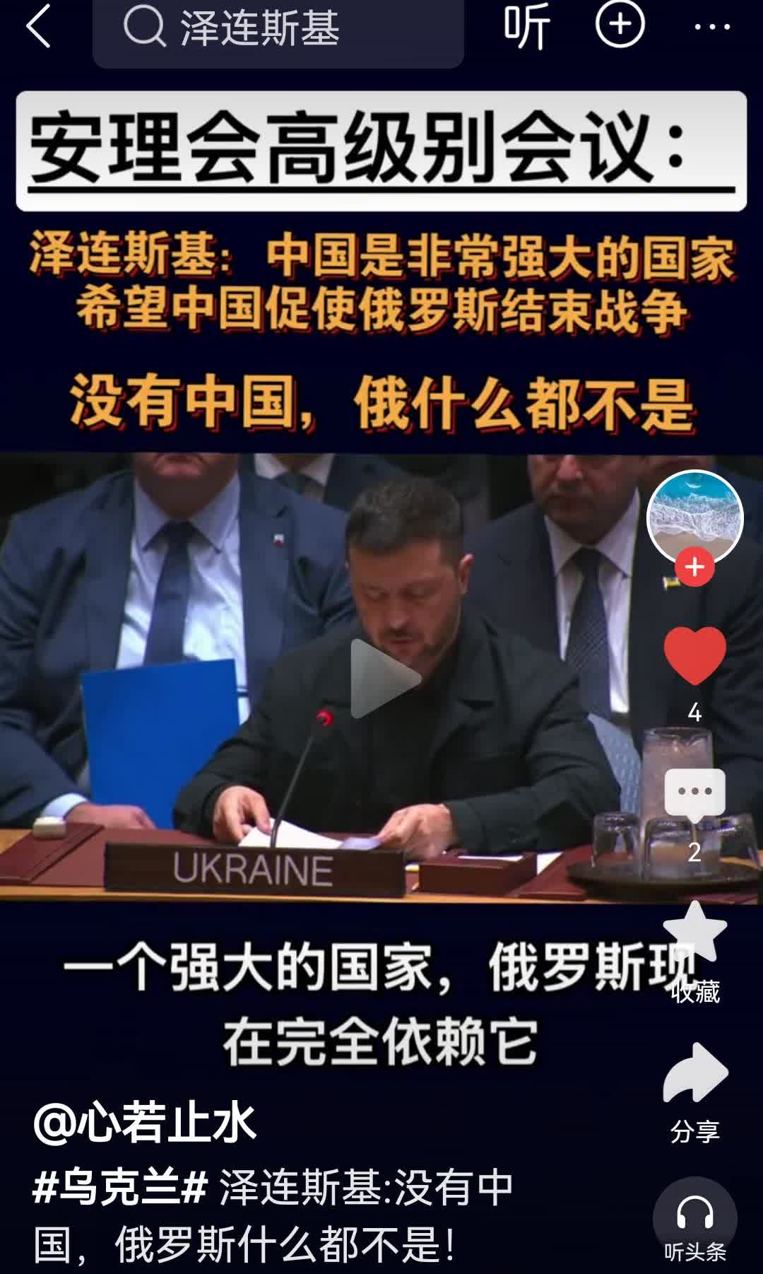 乌克兰总统泽连斯基在9月25日,联合国讲话时说到:“中国是一个强大的国家,俄罗斯完全依赖它。如果中国希望停止俄乌冲突,可以迫使俄罗斯结束俄乌冲突的。”泽连斯基总统还在会上说“离开了中国,普金的俄罗斯啥都不是的”。 中国人民历来爱好和平,主张以和为贵。在俄乌冲突问题上,我们从来主张“劝和促谈”。俄罗斯不买账,不吃这一剂,我们也无可奈何的。至于你让我们“迫使”俄罗斯如何如何……你就强人所难了,我们无能为力,爱莫能助了。 回想起九几年的南海撞机事件,俄罗斯还是我们的说话人,见证了呢。且俄罗斯外长拉夫罗夫亲自随机前往美国的。 俄罗斯和乌克兰都是我们的邻居,都是我们的好朋友。我们愿你们两家早日和好。 总统先生也说了,美国也是一个强大的国家。就请美国给俄罗斯说说吧。且美国和乌克兰关系还好嘛。
