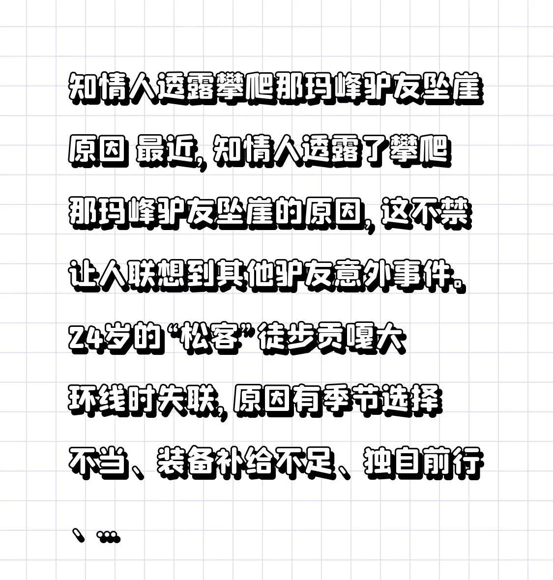 知情人透露攀爬那玛峰驴友坠崖原因知情人透露攀爬那玛峰驴友坠崖原因 近日,知情人
