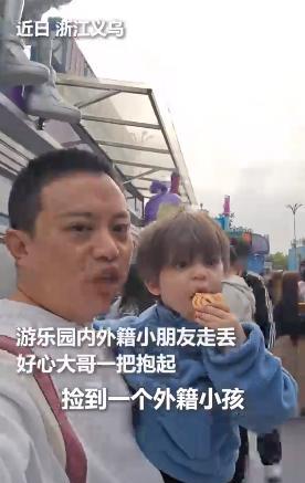 “火到人民日报了!”4月8日浙江义乌,男子游乐园闲逛时,捡到一个外国小孩,小孩不