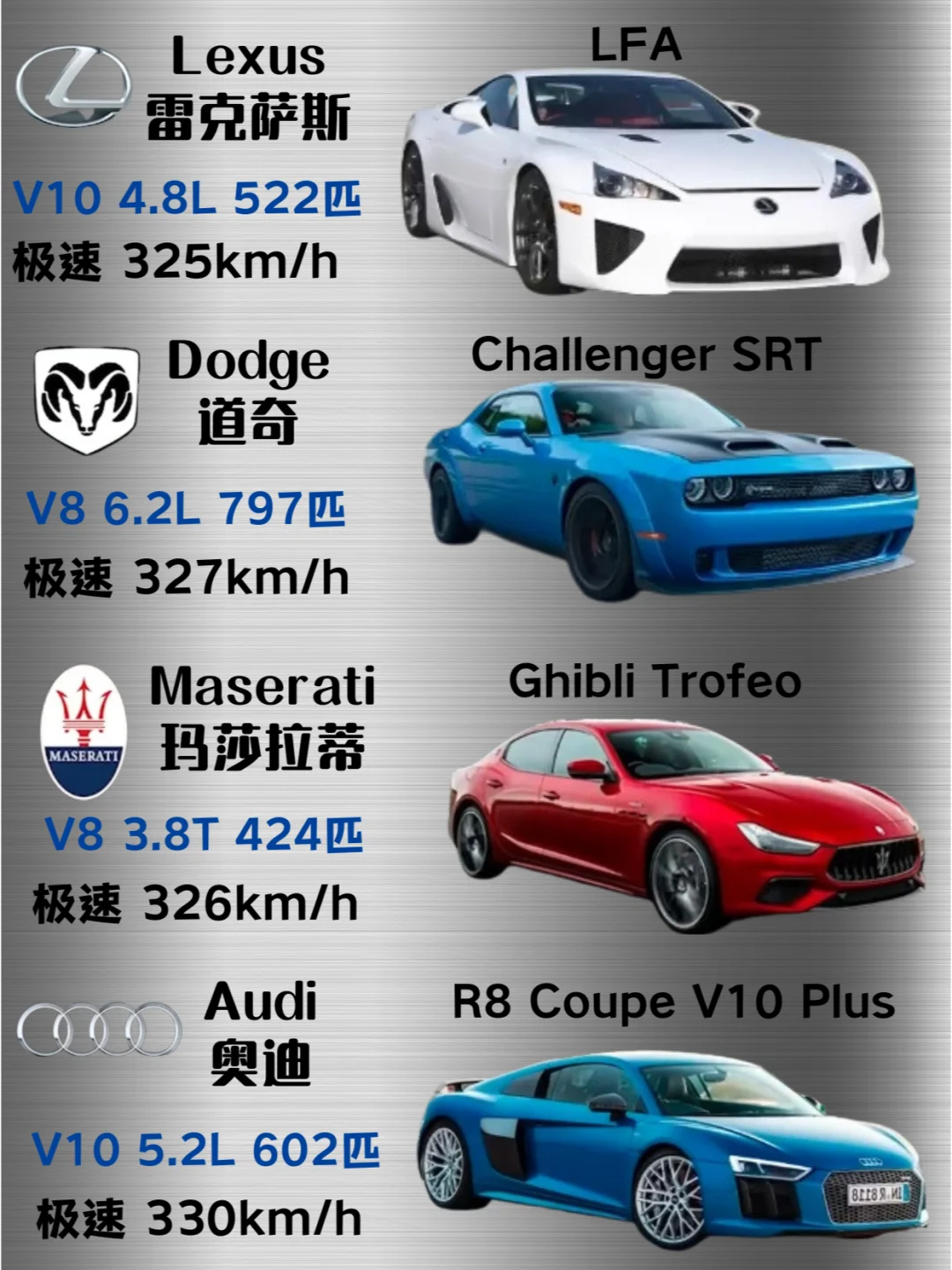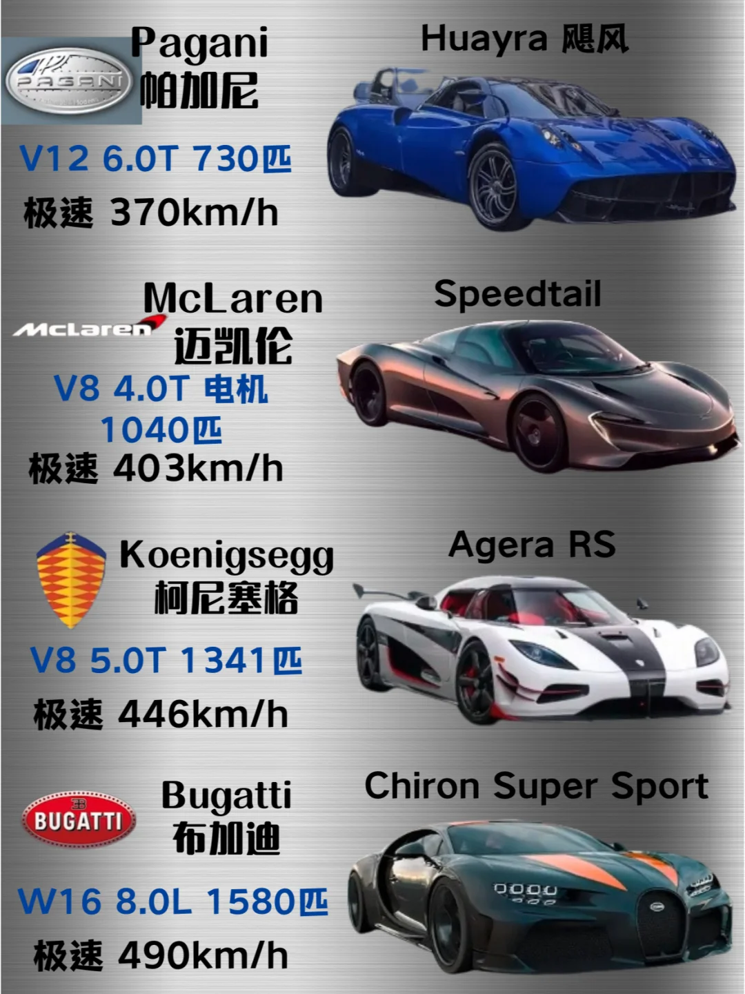 最高时速丨各品牌最速量产车