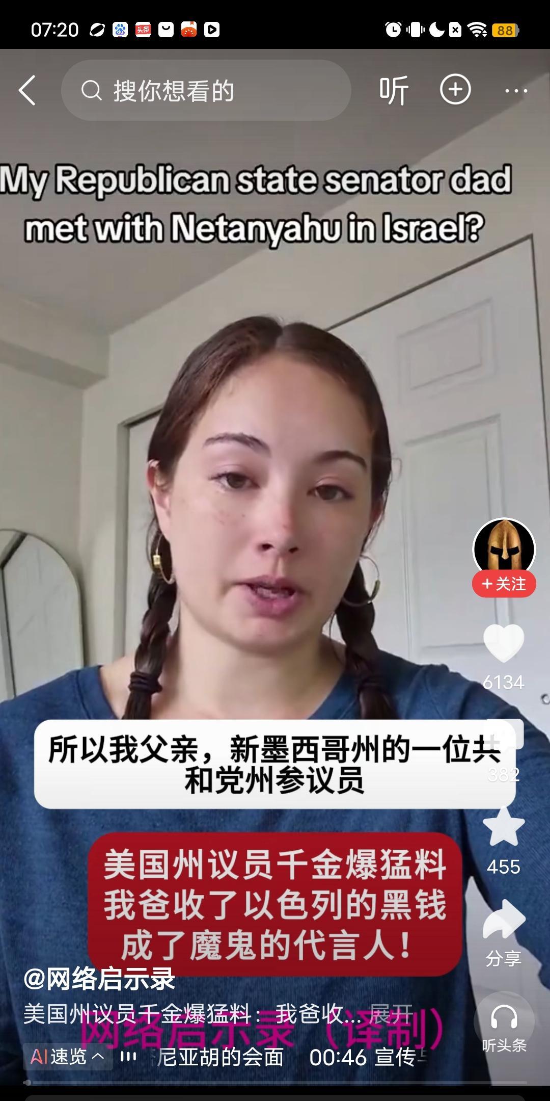 这傻孩子!近日有美国的网友爆料,自己在美国当议员的父亲。去了一趟以色列,就被以色列给收买了。不仅违心说一些以色列的好话,还帮助以色列做事。女子看不过去,就把这事给爆料了出来。 只能说这个孩子,多多少少有点天真。她以为在美国,就她爹收了人家以色列的钱。实际情况是,大多数高管都有拿以色列的好处。不然的话,老美不会那么支持以色列。 有的时候,想要出淤泥而不染是要付出代价的。有些是自己的生命,有些是家人的。