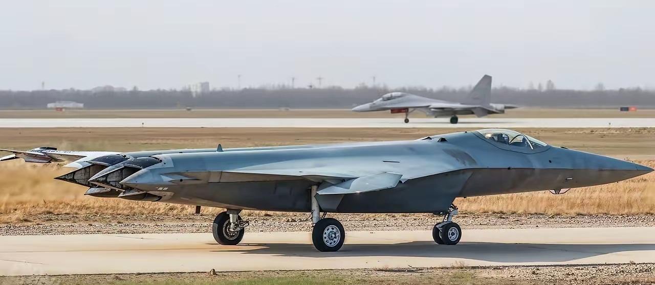 越来越清晰了,看样子已经飞了不少的起落了,而且还密集度挺高。 从外形的协调程度来看,它的确不如远处那一架。但从技术水平来说,他们已经是隔代了。 新飞机上的确有一些地方似乎需要更精致地修改一下,尽量减少一些,看着不那么流畅的过渡。 中国新研制飞机一般先在工厂施试飞,边飞边改,重在飞机本身的技术性的。 然后再交付军方的特定基地试飞,按照实战条件要求试飞,最终才能装备部队。 所以从技术验证机到原型机,再到定型机,必要的修改是不可避免的。 随着计算机辅助设计和模拟技术的发展,很多设计环节得到精简,试飞环节也得到精简,这就大大缩短了新机研制的进程。 图片来自国际互联网。