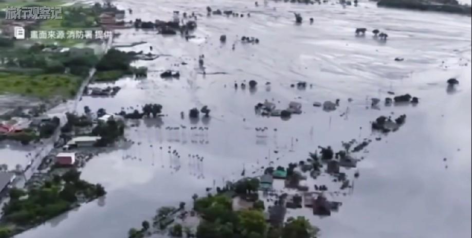 这是台湾省花莲县万荣乡马太鞍社区,前几天花莲溪下游河道,遭遇外海高潮水位叠加大流
