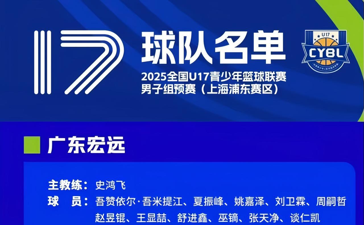 2025全国U17青少年篮球联赛男子组预赛将在9月28日在上海浦东正式开始打响! 广东宏远U17男篮大名单也出来了,由夏振锋、谈仁凯领衔出战,教练是大家很熟悉的前广东宏远球员史鸿飞。 期待一下,史指导带得宏远三队可以取得什么样的成绩? #广东宏远#