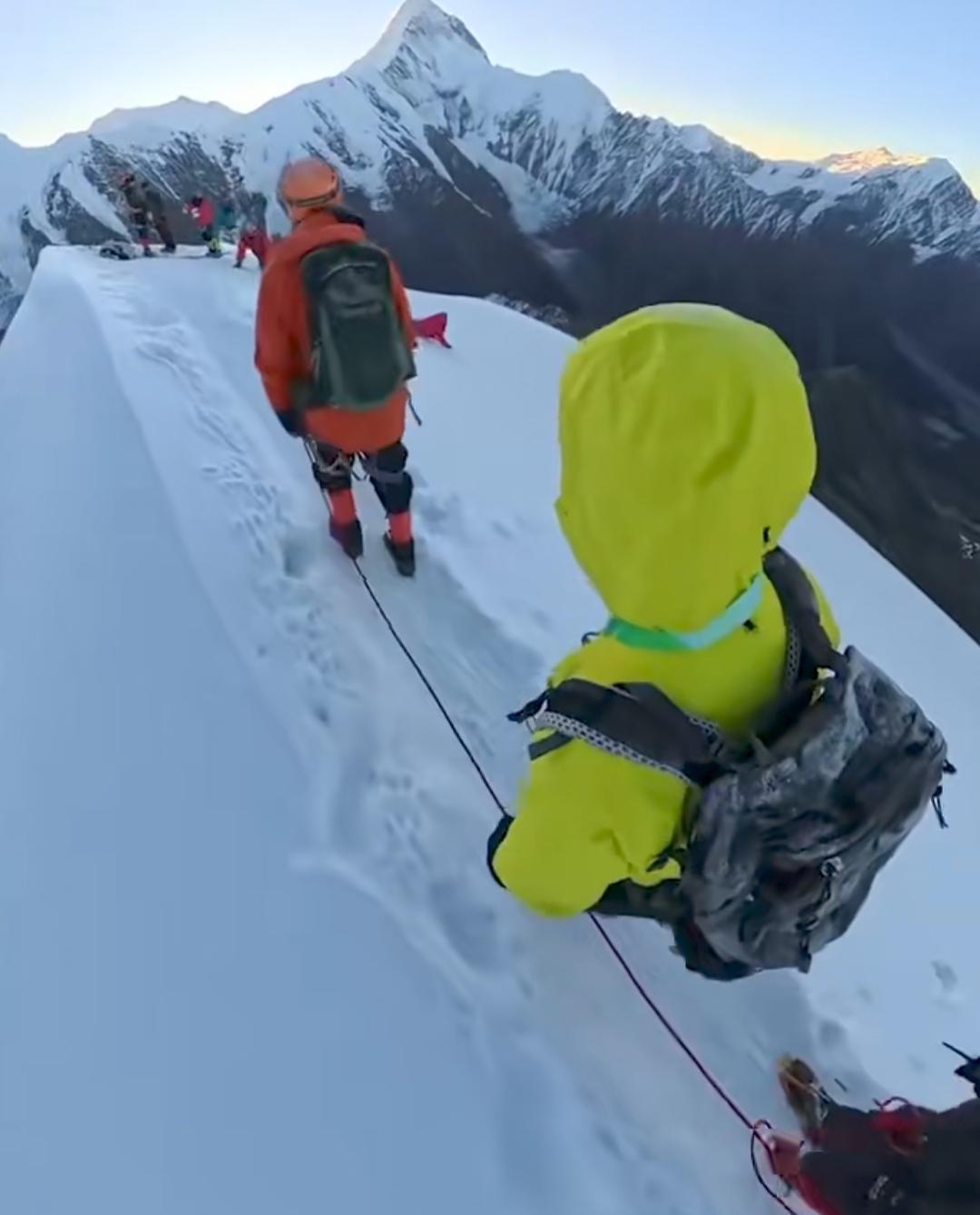 那玛峰海拔五千多米,据说攀爬难度不大,适合一些新手!但是,难度不大不意味着没有风险。 在近日发生的这起事故中,很明显,出事的这位攀登者大意了,几个小错误就足以致命。 为了拍照,解开安全绳,显得过于自信了! 起身太快,忘了这里的海拔,也高估了自己的身体! 随手没有带冰镐,以至于在下滑的过程,无法减速! 所以,细节不仅决定成败,也能决定生死,特别是在高风险的雪山之巅。