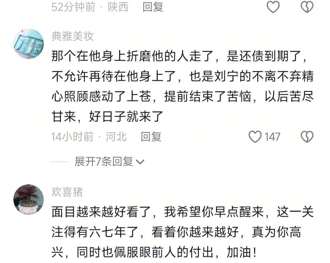 我终于知道 为什么彭亚楼看起来已无康复的机会了,刘宁却依然九年都守在他身边,因为可能真会有奇迹出现! 刷到彭亚楼最新视频时,我手里的奶茶都差点洒桌上!之前看他视频,眼神木得跟没通电的灯泡似的,镜头移到哪儿他都没反应,脸也绷着,跟戴了层硬壳面具似的。结果这才三天三夜没见,他居然能跟着镜头转了,有人在旁边说话,眼睛“唰”地就瞅过去,笑的时候嘴角还能弯出个自然的弧度,看着跟正常人没啥两样!但越看越纳闷——这“三天三夜折腾”到底折腾了啥?是换了护理方式,还是加了治疗?没个准信儿,咋就突然好转了? 本来想这肯定是大好事,赶紧跟我妈分享,结果我妈一句话给我问住了:“有医生说他好了不?没个检查报告,光看眼神靠谱不?”我这才反应过来,对啊!之前河南有个植物人丈夫醒过来,人家家属连脑CT报告、康复日志都晒出来了,医生也出来说情况。彭亚楼这儿倒好,就靠咱网友眼睛看,没个专业评估,万一后续状态反复,那之前喊“奇迹”的人,会不会又反过来骂“演的”?想想都觉得有点膈应。 老实讲,刘宁九年天天守着彭亚楼,喂饭、翻身、清理排泄物,想想都崩溃!我之前帮邻居张阿姨照顾过几天她卧床的老伴,才三天就累得沾床就睡,手腕酸得抬不起来,张阿姨还偷偷跟我说,每个月尿不湿、药钱就得三千多,她退休金根本不够,天天愁得睡不着。刘宁这九年,光靠“感动上苍”能扛过来?没人问她收入咋来,也没人提她有没有偷偷哭过,就一个劲儿夸“道德楷模”“不离不弃”。 之前四川有个大姐,照顾植物人丈夫五年后实在撑不住离婚,结果被网友骂“冷血”“没良心”,最后被逼得晒出家里的负债单和自己的抑郁诊断书,大家才闭嘴。有人跟我说“善有善报,九年坚持肯定有回响”,这话听着暖,但现实里,光靠“善”可填不了医药费的坑啊!刘宁没说这些难,但不代表没有,总不能因为她没喊苦,就当这些压力不存在吧? 说到这儿,我想起我妈之前照顾姥姥的事儿。姥姥中风后卧床三年,我妈天天早上五点起来擦身、喂饭,中午趁姥姥睡了赶紧去买菜,晚上还得起来好几次看看姥姥有没有尿床。有次我回家,看见我妈在厨房偷偷抹眼泪,说“撑不下去了,浑身疼还没钱”,那时候我才知道,长期照护哪是光靠“坚持”“感动”就能扛的?得有钱,得有个人搭把手,还得有个盼头。 本来以为彭亚楼这事儿火了,大家会多关注照护者的苦,结果评论区全是“接好运”“我家也等奇迹”,有个网友留言“我妈照顾我爸八年了,啥时候能好啊”,没几个人理。你说这是不是有点本末倒置?咱看故事感动归感动,可别光顾着盼“奇迹”,忘了那些没奇迹的照护者,他们还在天天熬呢! 说真的,我后来查了下数据,中国现在有超1000万失能/半失能患者,能像彭亚楼这样“好转”的,才1.2%!剩下的98.8%呢?他们的照护者天天重复同样的事,没镜头拍,没网友夸,连个倾诉的地方都难找。我之前刷到个安徽阿姨的视频,照顾植物人老公十年,视频里就拍她给老公擦手、说话,没华丽文案,评论才十几个,最高赞就一句“加油”,跟彭亚楼这儿动辄几十万赞的热闹比,差得不是一星半点。 有人说“平台就喜欢推奇迹故事,苦情的没人看”,这话我信!但咱作为看客,不能光跟着平台走啊。要是咱多给那些没“奇迹”的照护者点个赞,留句“辛苦了”,是不是能让他们稍微松口气?总不能让他们连“被看见”的机会都没有吧?你说是吧!#彭亚楼##刘宁彭亚楼#