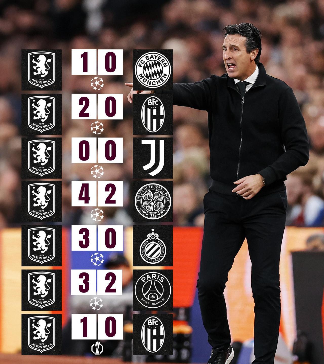1:0击败博洛尼亚后,阿斯顿维拉官方发布了埃梅里带队以来的欧战战绩,自豪地表示俱