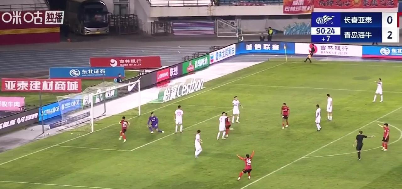 谭龙推射入网,长春亚泰扳回一分。 中超联赛第26轮,长春亚泰vs青岛海牛的比赛进