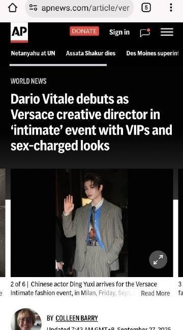 美国三大传统媒体之一的ABC News在其范思哲米兰时装周专题报道中,将全球品牌代言人、中国演员丁禹兮作为封面人物重点呈现,并报道了丁禹兮粉丝在现场以绿色气球组成的盛大应援场面