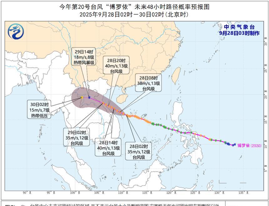 台风“博罗依”巅峰强度接近14级,28日距离海南岛南部最近!据中央气象台预报显示