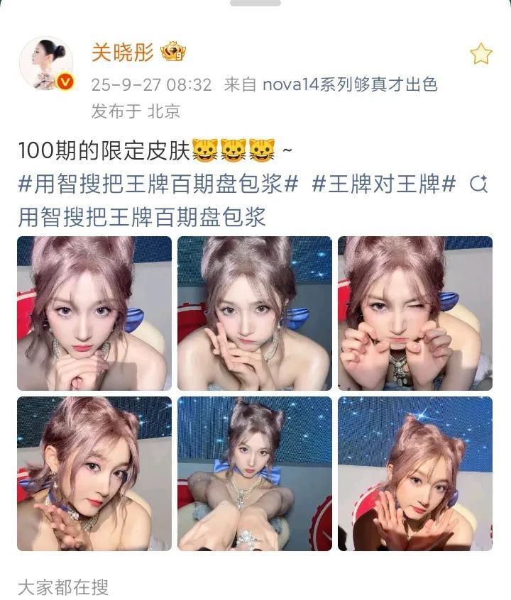 关晓彤,美美发文! 9月27日早上8:32,关晓彤在社交平台发了美美的六连拍,照