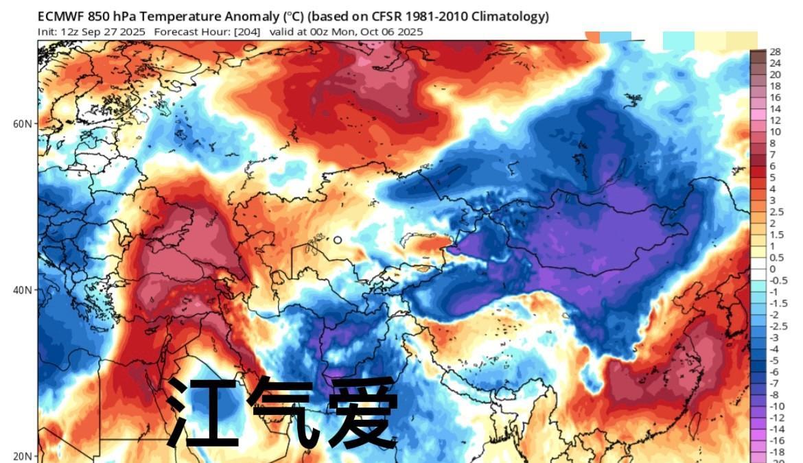 新报来看10上旬大气环流有新的调整850百帕来看,下周形势来看,西段有冷堆加强,偏南分量加大,这种信号到来,北方地区冷距平天气会升级低空南下冷空气动力变强,可以有效清除南方副高暖势力。 小结:未来西伯冷库变冷是大趋势,冷空气显著加强。对于下周天气变化,“看西低强度变化决定”