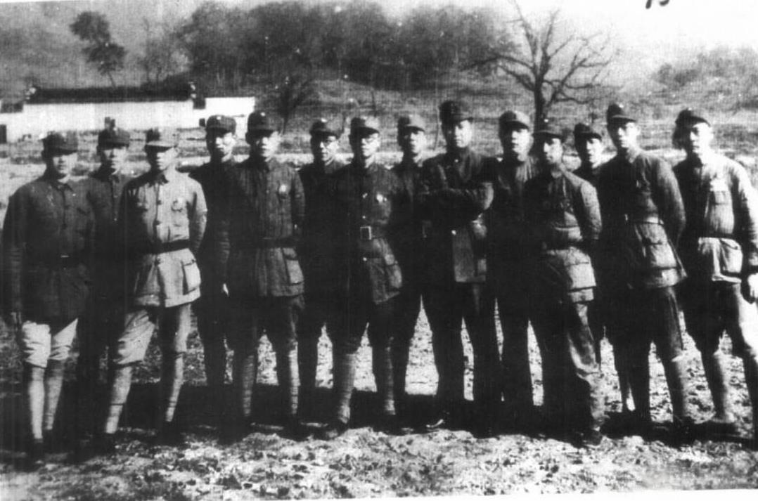 抗战时期,参加南昌起义的部分干部合影。图中,叶挺(右六)时任南昌起义前敌总指挥,是起义部队的军事总负责人。他率领的国民革命军第11军第24师是起义的绝对主力。陈毅(右一)在南昌起义后,闻讯后星夜追赶,于江西天心圩赶上队伍,协助朱德整顿部队,保存革命火种。粟裕(右四)时任起义军总指挥部警卫队班长,担任保卫领导机关的任务,后来朱德、陈毅领导的湘南起义中,他锻炼成长为一名基层指挥员。致敬#历史#