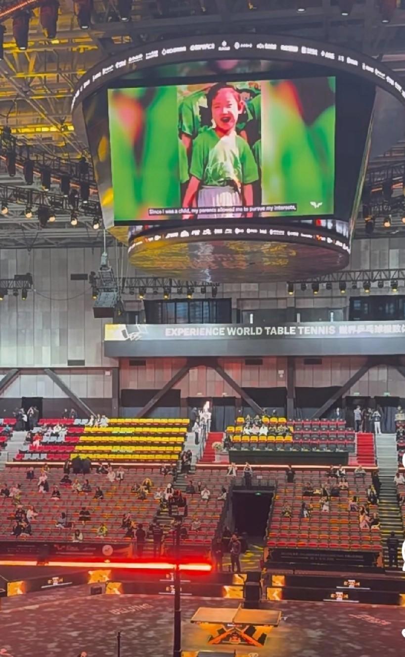 看到大屏幕上放的都是莎莎。 今天是中国大满贯正赛的首个比赛日,一会儿会有开幕式,去现场观赛的球迷也早早的入场了,看到已经在比赛现场的球迷分享说今天的安检很严,很多东西都是不让带进去的。看到大屏幕上滚动播放着莎莎从小时候到现在的照片,WTT知道大家喜欢谁,也是给莎莎安排了揭幕战,今天上午一开场肯定现场的球迷会很多。 看着莎莎这一路走来的过往,感慨时间过得很快,小时候的莎莎还扎过小辫子,但是自从打球后,她就一直是很短的头发。这次中国大满贯赛,小杨也来北京看比赛了,前两天的资格赛河北队的朱梓予和姚睿轩参加了,看到小杨也在现场观赛,朱梓予是打进了正赛,不过首轮就对朱雨玲。 今天是莎莎在中国大满贯的首秀,小杨肯定也会来现场看莎莎的比赛,给他的老孙加油,小杨是看着莎莎长大的,两个人的感情很深,等着全运会小杨就可以带着莎莎一起比赛了。