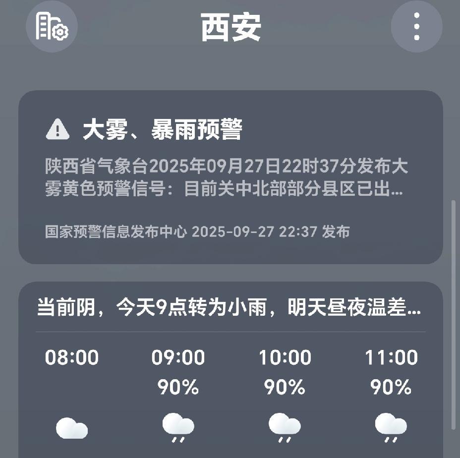 这会儿西安城北凤城大雨磅礴,天气预报却是阴天? 西安这次的雨,从昨天下午五点左右开始,淅淅沥沥下个不停。今天早上七点多正是学生上学,家长送孩子去小学幼儿园的时候,我躺在床上听着窗外唰唰地雨声,吵得无法再睡。 再查查天气预报,七点是阴天,怎么还这么大的雨?#西安天气# #西安早晨下雨# #西安天气预报# #西安早晨下雨# #西安雨景# #西安北郊下雨#