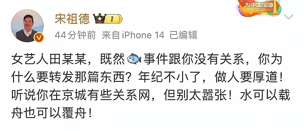 宋祖德是真的刚, 原来以为他就是个蹭热度的, 从这件事来看, 全网闭嘴, 只有宋