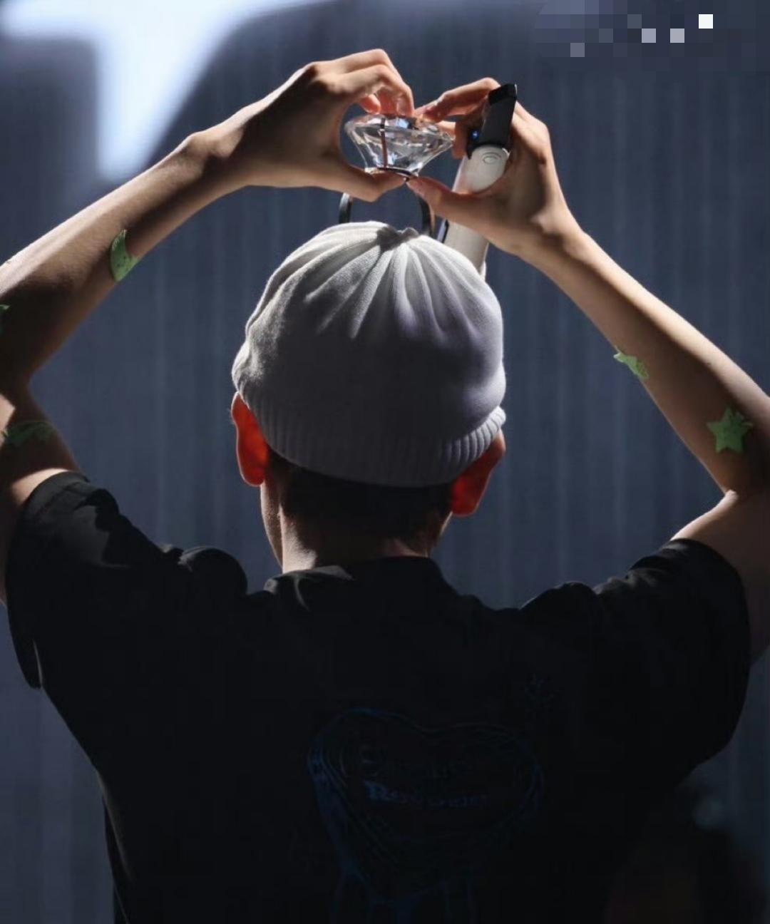 #边伯贤单膝跪地求婚#香港演唱会结尾的合照环节,边伯贤手持巨型钻戒道具,面向全