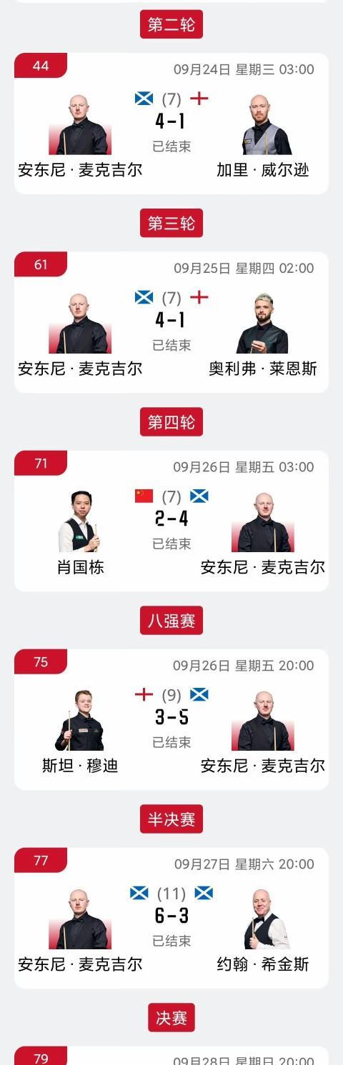 2025英国公开赛决赛,两位选手晋级之路: 1、魔术师一路连斩罗伯逊、特鲁姆普、塞尔比,含金量极高。尤其4-3特鲁姆普,6-1塞尔比。 2、一路上强敌不是很多,随机抽签也是运气,相信决赛对阵墨菲,他的运气也不会太差。