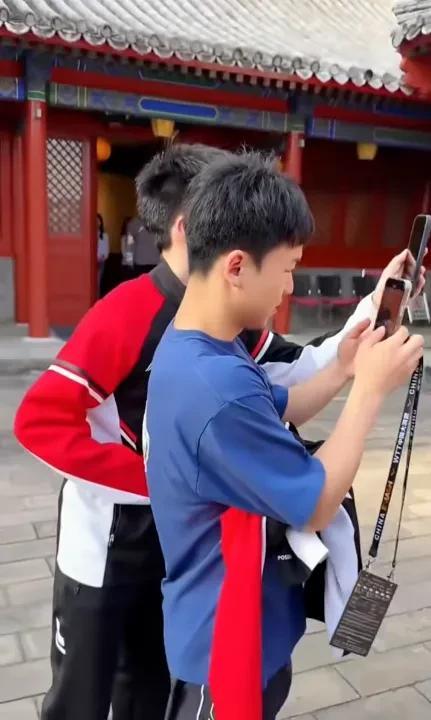 温瑞博被欺负惨了! 在法门寺抽签的时候, 向鹏,黄有政,温瑞博一起走着, 对面来了记者采访, 向鹏和黄有政第一时间, 把小温推了出去。 没准备好发言稿的小温, 顿时手足无措, 紧张的拧着瓶盖子。 黄油和向鹏不但不帮忙, 还看热闹不嫌大的起哄, 太气氛,太逗了!