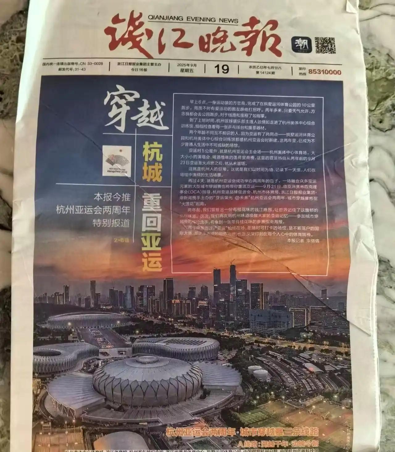 钱江晚报报道杭州亚运会两周年,用的确是济南的背景。 你别说,从这个角度看济南,还