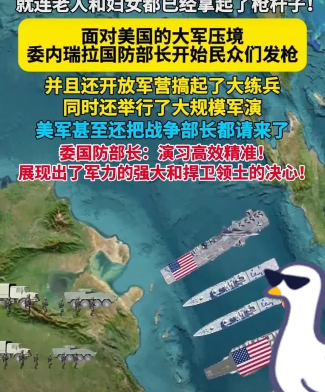 南美的泥潭已经准备好了 大家都在等大漂亮的会议结束,一旦他与委内瑞拉正式对抗,必然会把精力海外的重点转移到南美,而其他地区则是一个真空地带,必然会被有心之国纷纷抢占。 委内瑞拉看准了这一点,所以才在南美率先采取了应对措施,只要能顶住大漂亮的这波攻势,后面必然会有许多支持他的国家,就像顶住大漂亮的这波攻势一样。南美已经成为大漂亮“发泄的口”。 实际上大漂亮的策略很明确,用以色列拿捏中东油桶,用乌克兰切断俄罗斯石油天然气,现在找个缉毒的借口,去干趴南美油桶委内瑞拉,本质上就是为了维持石油美元体系,顺便换成卖自己的高价石油。
