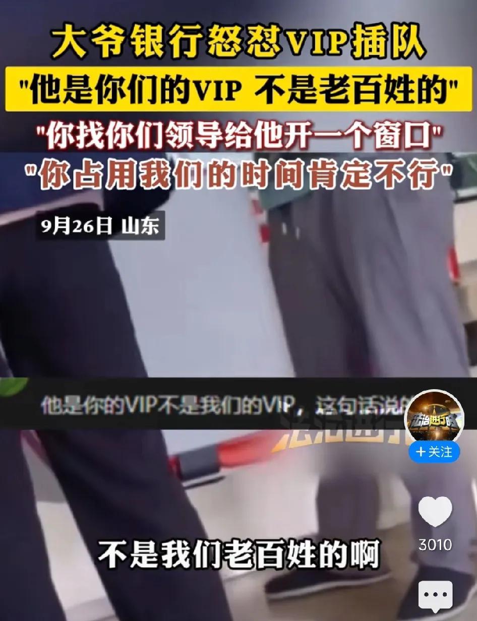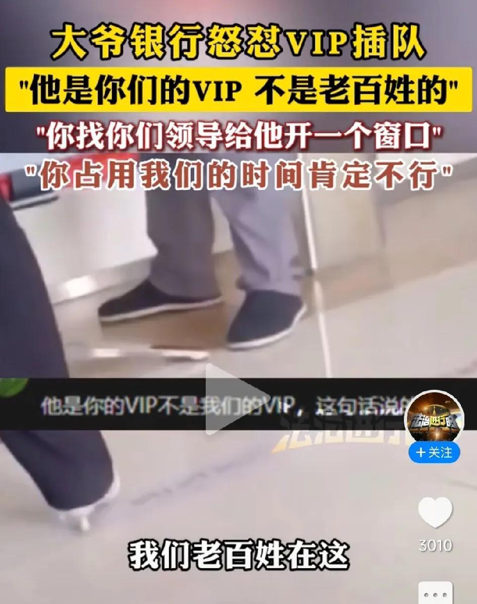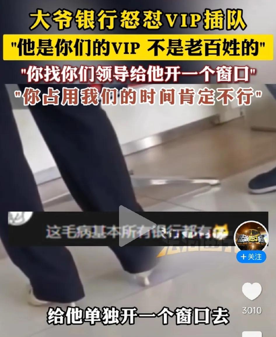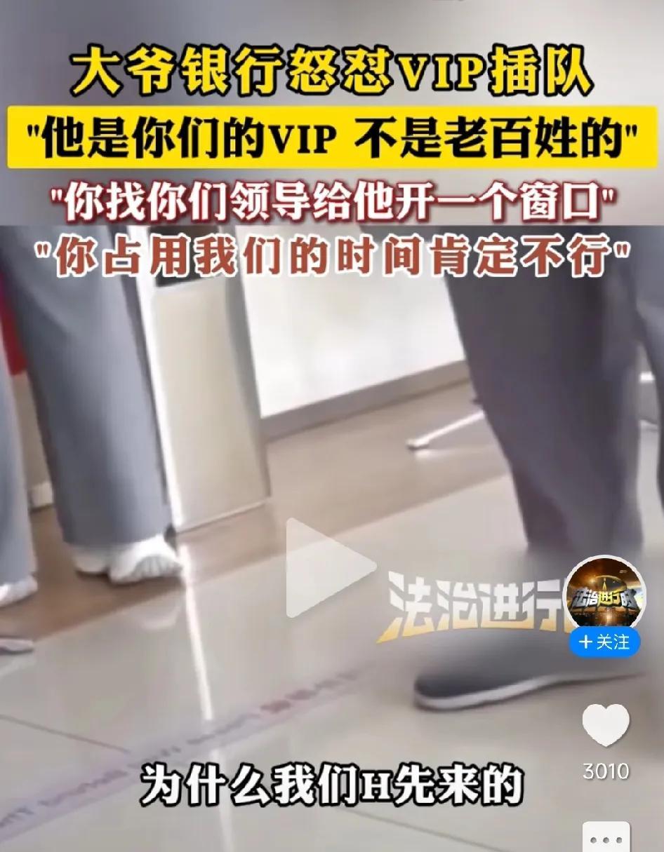 一语点醒梦中人!大爷银行怒怼VIP插队:他是你们的VIP,不是老百姓的! 大爷去